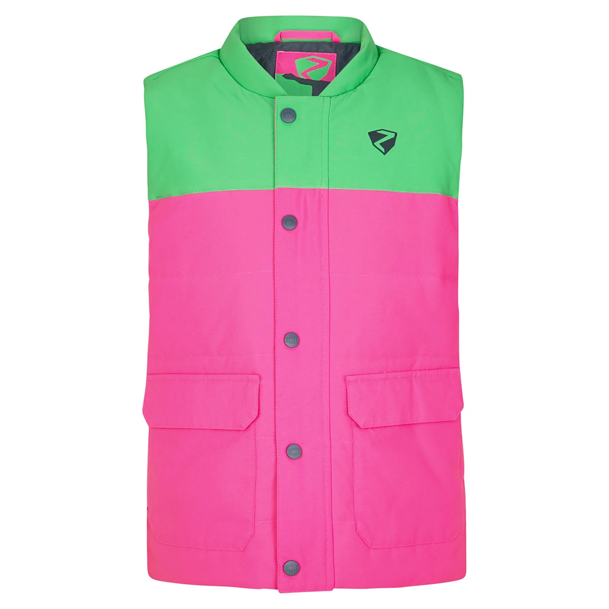 Die funktionelle, wattierte ZIENER Weste ANTREYU JUNIOR für Kinder punktet mit ihrem lässigen Look und lässt sich perfekt mit der ANTREYU Jacke kombinieren. Sie hält dank der hochwertigen 140g/m² Wattierung bei kaltem Wetter zuverlässig warm. Zusätzlich ist sie mit der atmungsaktiven, wasser- und winddichten ZIENER AQUASHIELD® Membran (Wassersäule 10.000mm/Atmungsaktivität 10.000g/m²/24h) ausgestattet, die für ein warmes und trockenes Klima sorgt. Über dem Reißverschluss ist eine Knopfleiste angebracht. In den aufgesetzten Taschen mit Druckknöpfen lassen sich kleinere Gegenstände verstauen. Des Weiteren ist sie versehen mit reflektierenden Designelementen. Dank der umweltfreundlichen Imprägnierung ist die Weste PFC frei.