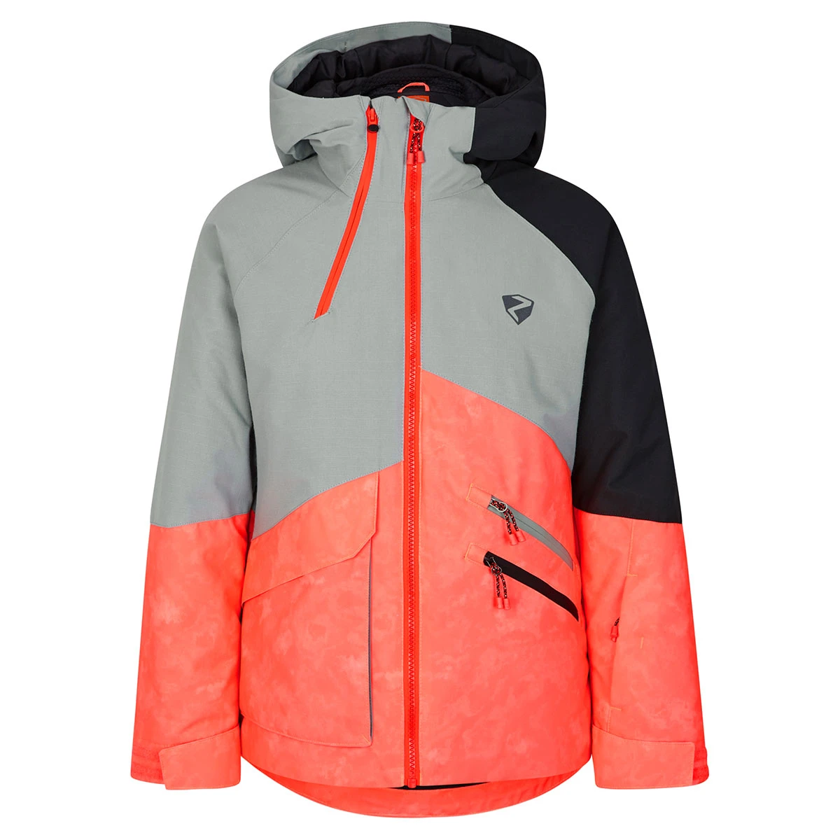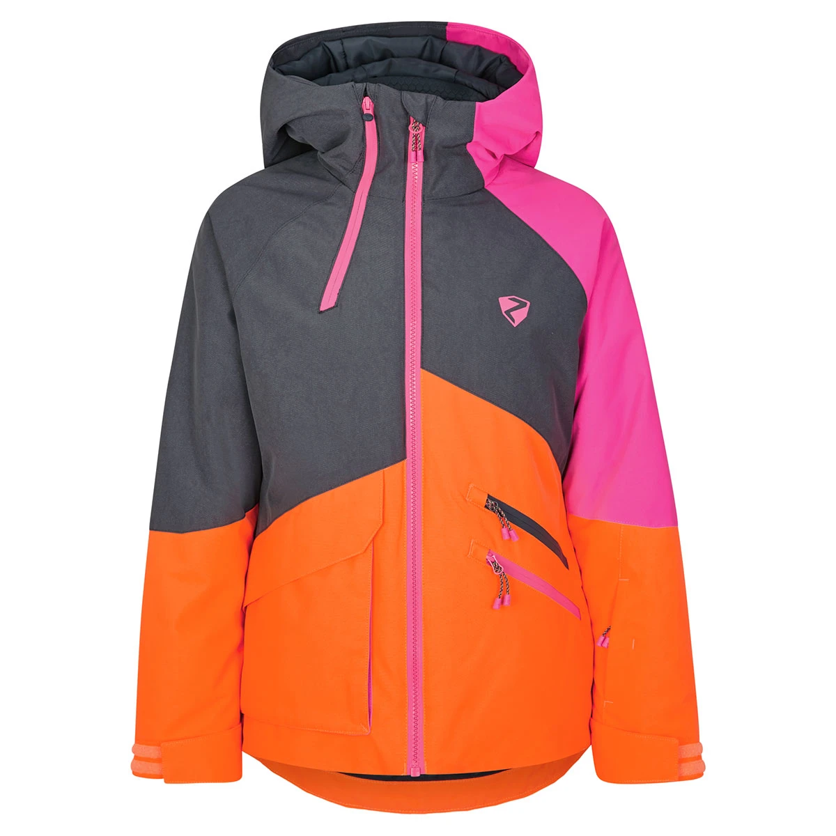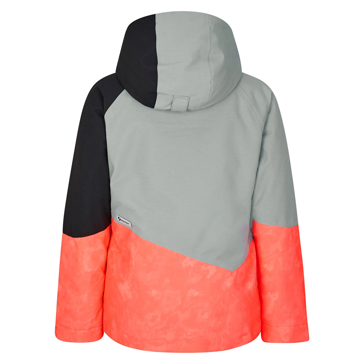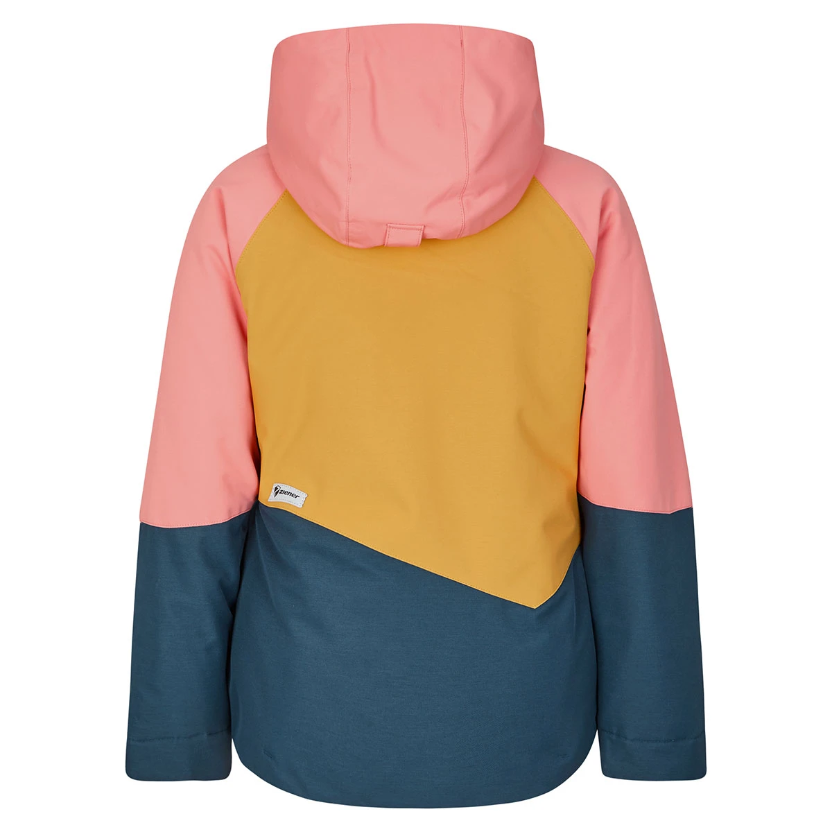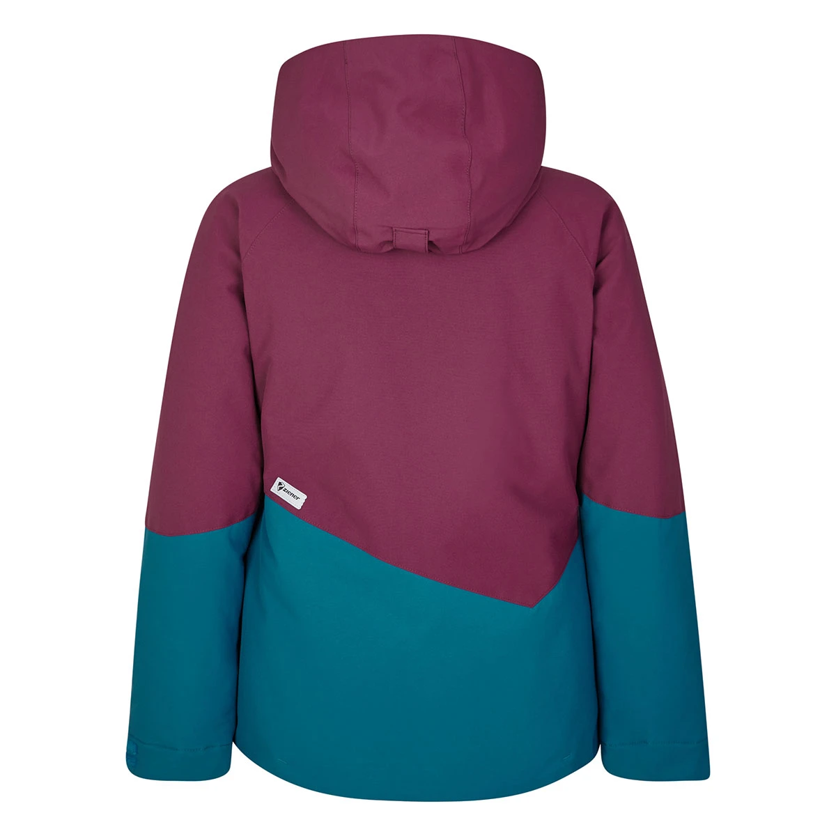 Die funktionelle, wattierte ZIENER Skijacke ARUMA JUNIOR für Mädels besticht durch den kuschelig hohen Kragen, der dank eines kleinen Reißverschlusses erweiterbar ist. Die Jacke für Nachwuchs-Skifahrerinnen ist mit der atmungsaktiven, wasser- und winddichten ZIENER AQUASHIELD® Membran (Wassersäule 10.000mm/Atmungsaktivität 10.000g/m²/24h) ausgestattet, die für ein warmes und trockenes Klima sorgt. Mit ihrer 120g-Wattierung hält die Skijacke auch an kalten Pistentagen mollig warm. Dank der umweltfreundlichen Imprägnierung ist sie PFC frei. Die vielen technischen Details tragen zum Spaß beim Skifahren bei: verschweißte Nähte, der Schneefang, elastische Ärmelinnenbündchen, sowie Skibrillen-, Smartphone- und Skipasstasche. Zusätzlich ist die Jacke mit reflektierenden Designelementen versehen. Die Kapuze kann gemäß der DIN EN 14682 (Sicherheit für Kinderbekleidung) verstellt werden.