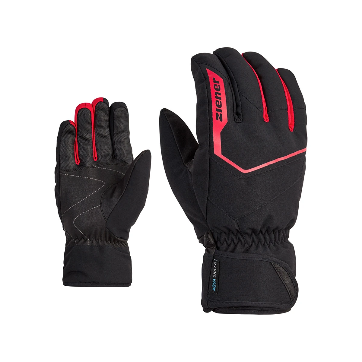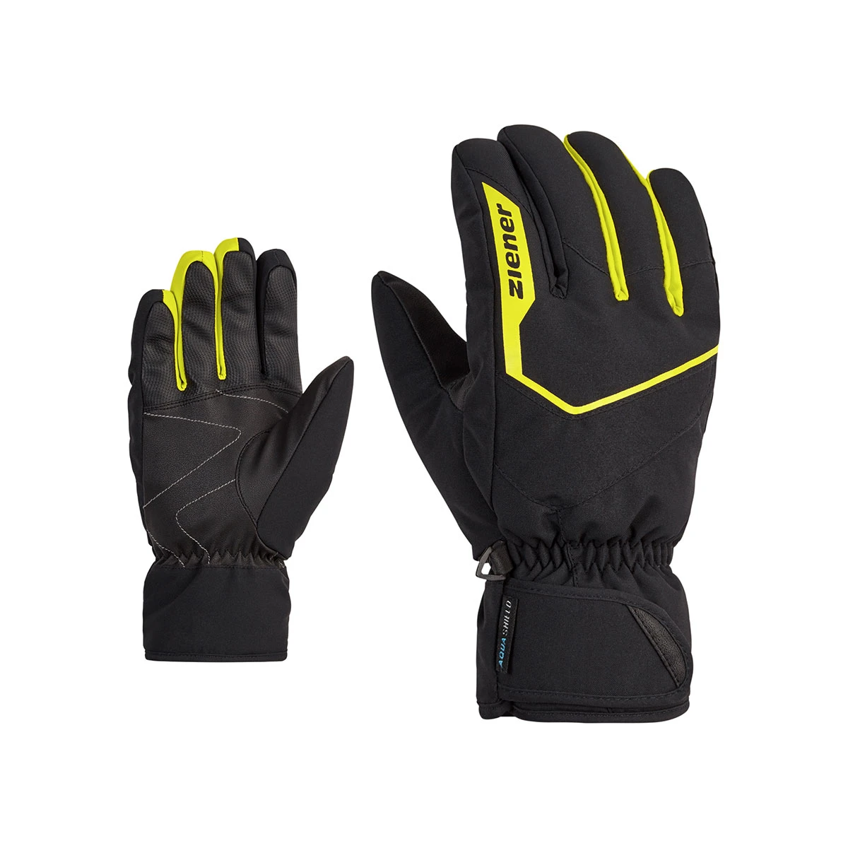 Die modernen, sportiven ZIENER Skihandschuhe GARIGON AS® sind die idealen Begleiter an kalten Tagen, da sie mit einem besonders weichem Futter ausgestattet sind. Die wasser- und winddichte ZIENER AQUASHIELD® Membran sorgt für ein trockenes und warmes Klima im Handschuh – auch bei widrigen Wetterbedingungen. Der breite Klettriegel und ein schmal geschnittener Bund ermöglichen es, die Handschuhe unter der Jacke zu tragen.