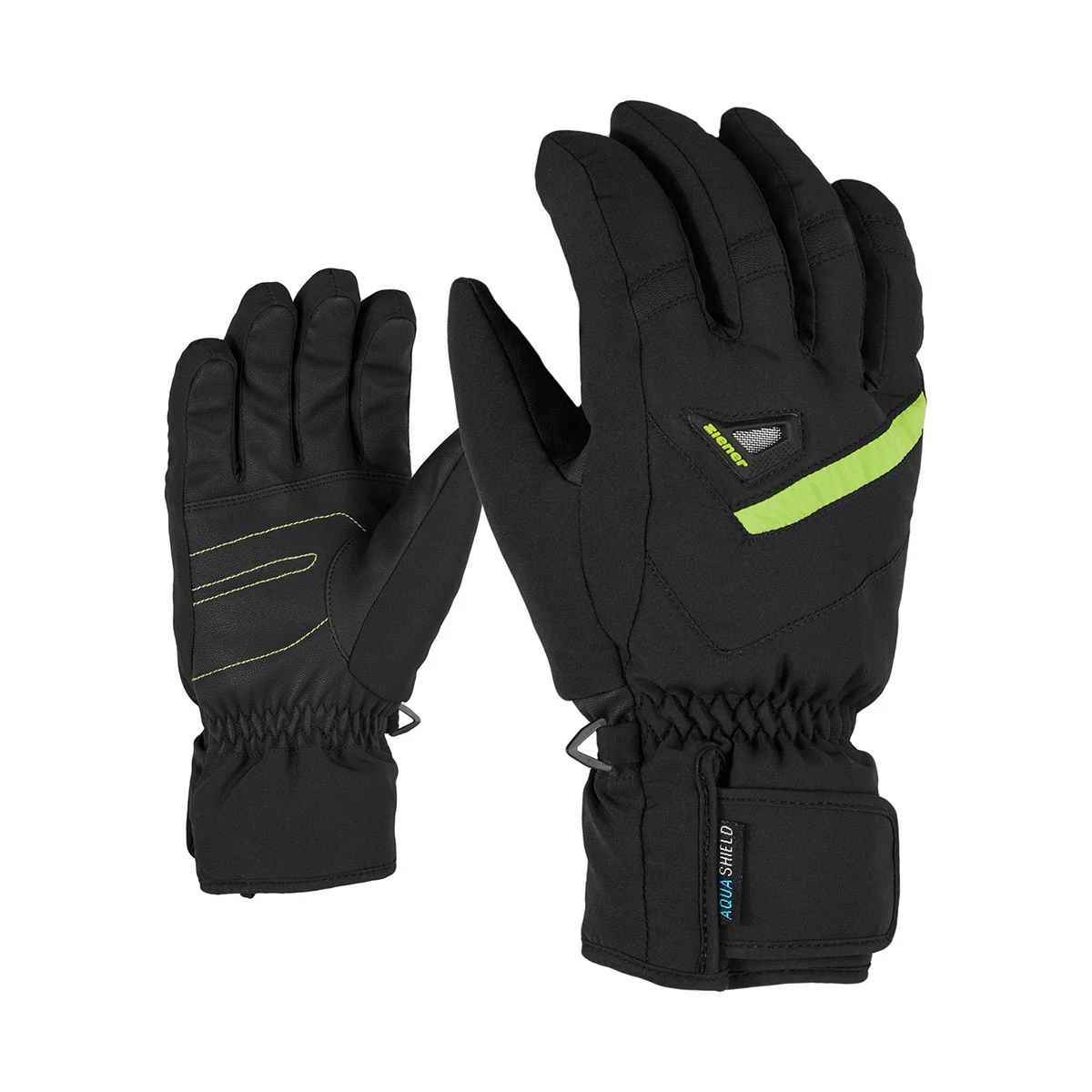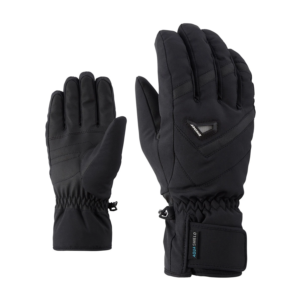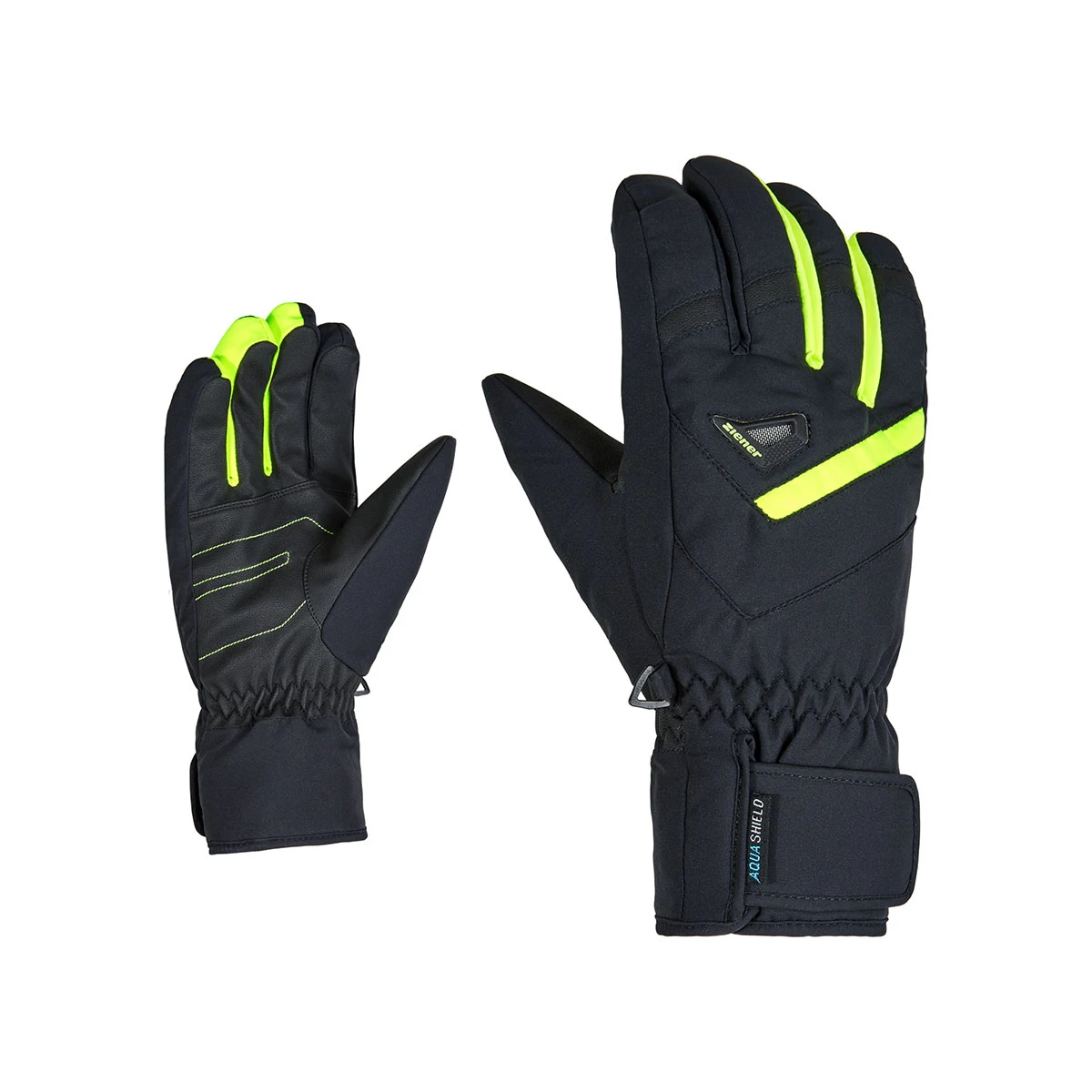Die komfortablen ZIENER Skihandschuhe GARY AS® sind mit wasser- und winddichter ZIENER AQUASHIELD® Membran ausgestattet. Diese sorgt für ein sehr warmes und trockenes Klima. Die griffigen Innenhände verleihen optimale Kraftübertragung am Skistock. Ein Ventilationslogo auf der Oberhand bietet angenehmen Klimakomfort. Der breite Klettriegel ermöglicht es, die Handschuhe unter der Jacke zu tragen.