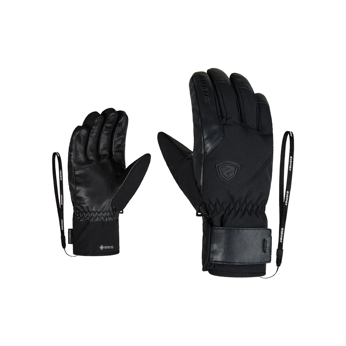 Die extra warmen, klassisch-modernen ZIENER Herrenskihandschuhe GENIO GTX PR überzeugen durch ihre griffigen Innenhände aus Ziegenleder. Die Handschuhe sind dank der GORE-TEX Membran garantiert wasserdicht, winddicht und atmungsaktiv. Das warme und weiche PrimaLoft® Futter sorgt für angenehme Temperaturen. In Kombination mit dem sehr elastischen Material punktet der Handschuh mit einem hohen Tragekomfort und Bewegungsfreiheit. Der Klettverschluss sorgt für einen perfekten Sitz. Zusätzlich kann der Handschuh mit der Z-Leash am Handgelenk befestigt werden. Enthält nichttextile Teile tierischen Ursprungs.