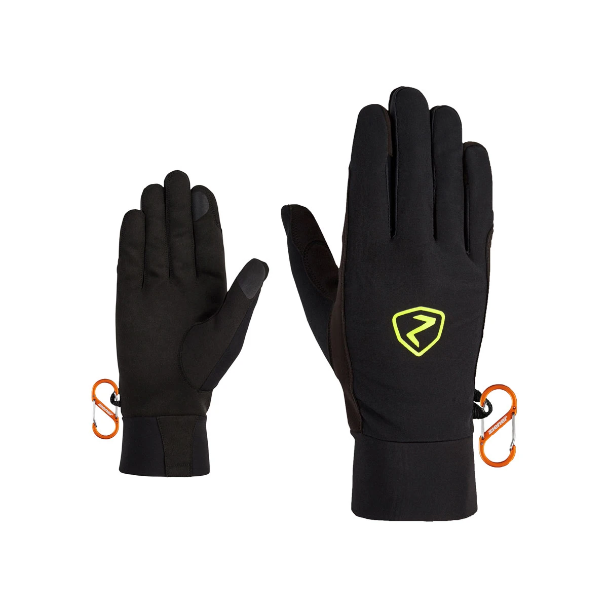 Für den Aufstieg bei Temperaturen im Plusbereich sind die sehr leichten, ungefütterten ZIENER Skitouren-Handschuhe GYSMO TOUCH aus hochwertigem CARVICO Material die richtige Wahl. Ihre enganliegende Innenhand bietet optimale Griffigkeit im alpinen Gelände. Bei schweißtreibenden Aufstiegen garantieren die Handschuhe hohe Atmungsaktivität. Das elastische Material und die anschmiegsamen Bündchen sorgen für den perfekten Sitz. Die stabile und technische Verarbeitung mit neuer Schnittführung ohne störende Nähte auf der Innenhand macht sie zum perfekten Begleiter in den Bergen. Das Smartphone kann mit Hilfe der TOUCH Funktion am Zeigefinger kinderleicht bedient werden. Inklusive kleinem Karabiner zum Befestigen der Handschuhe.