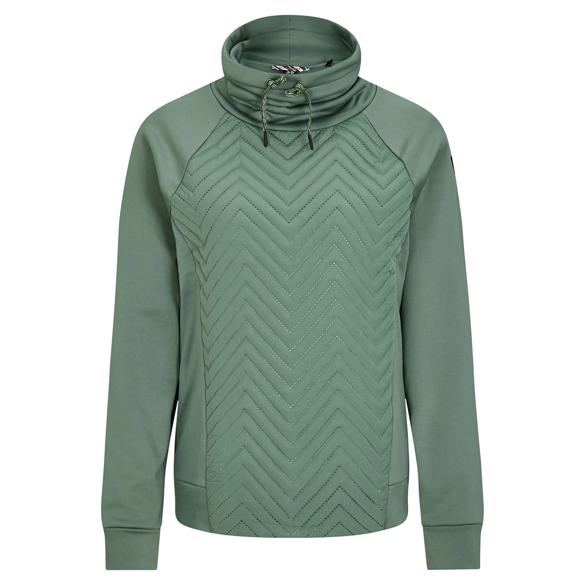 Der funktionelle ZIENER Damen Midlayer JAORA LADY punktet mit seiner leicht wattierten Front, einer trendigen Kordel und einem lässigen Schnitt. Zudem besitzt er eine aufgeraute, wärmende Stoffinnenseite und einen hohen Stehkragen – für die Extraportion Wärme . Das elastische, schnelltrocknende Material sorgt für eine ideale Klimaregulierung und maximale Bewegungsfreiheit.