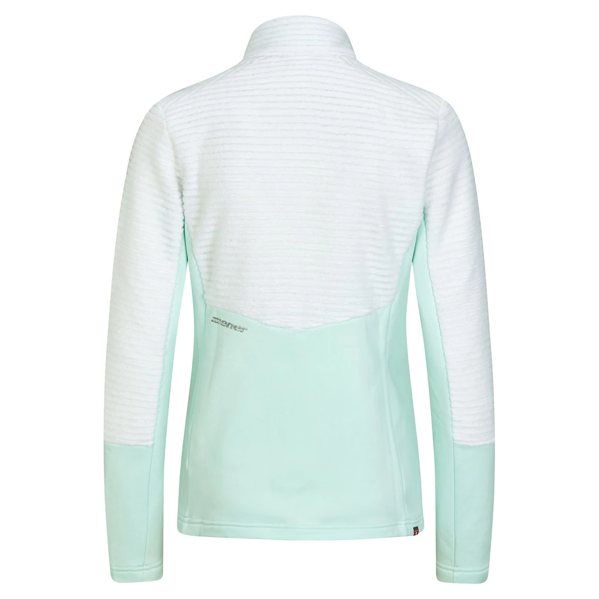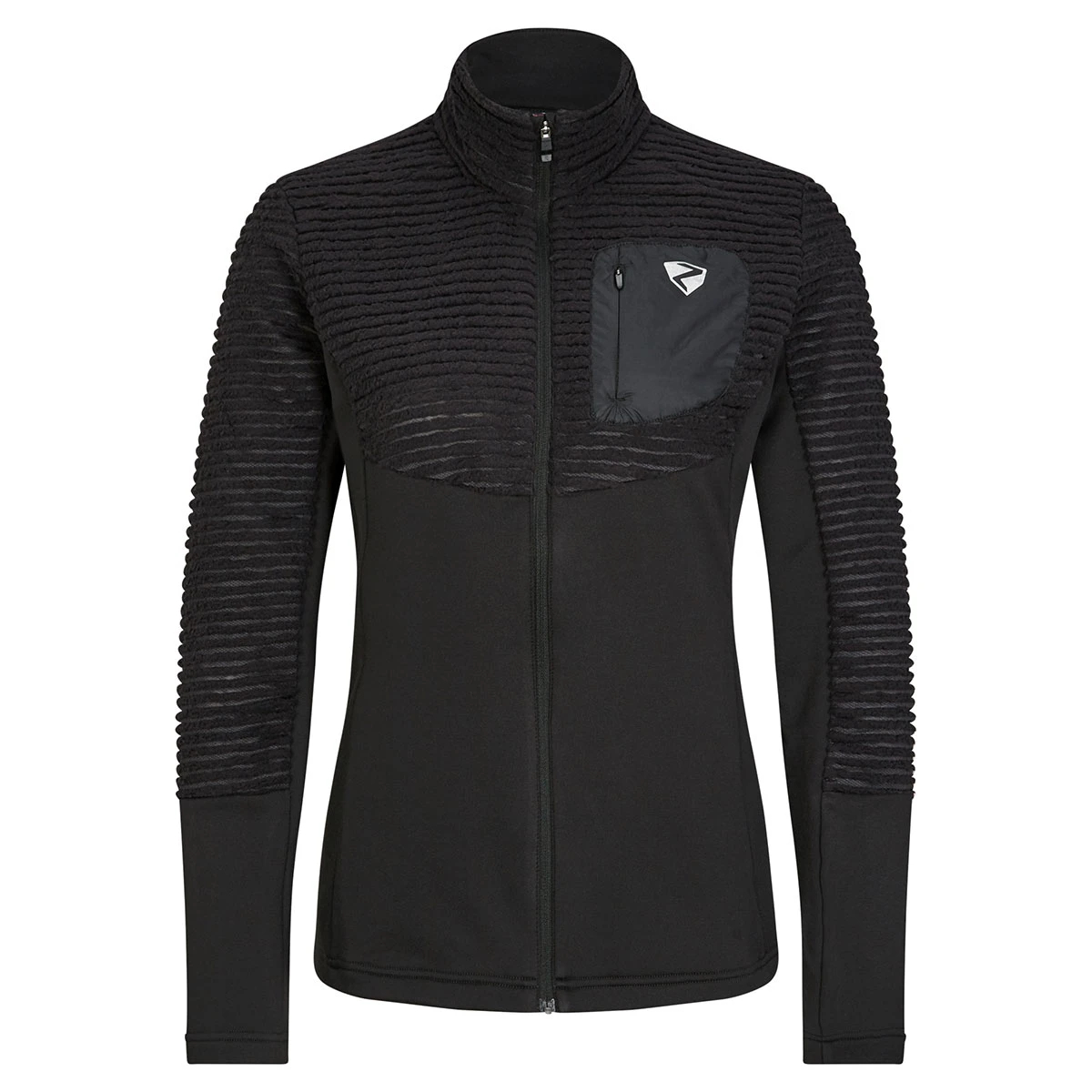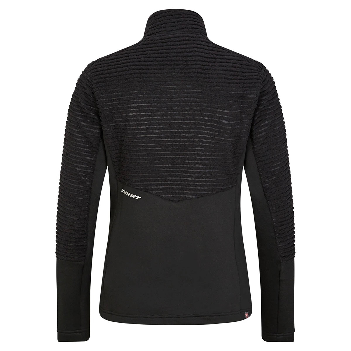 Die funktionelle, wärmende ZIENER Damen Midlayer Jacke JONIA LADY besticht durch den modischen High Loft Fleece von PrimaLoft®, der optimal wärmt und dabei atmungsaktiv und schnelltrocknend ist. Sie besitzt eine aufgeraute, wärmende Stoffinnenseite sowie einen Front Reißverschluss und einen Stehkragen. Das elastische, schnelltrocknende Material sorgt für eine ideale Klimaregulierung und maximale Bewegungsfreiheit. In den Eingrifftaschen und der Brusttasche lassen sich die wichtigsten Gegenstände verstauen. Das Produkt enthält recyceltes Material – für einen ressourcenschonenden Umgang mit der Umwelt.