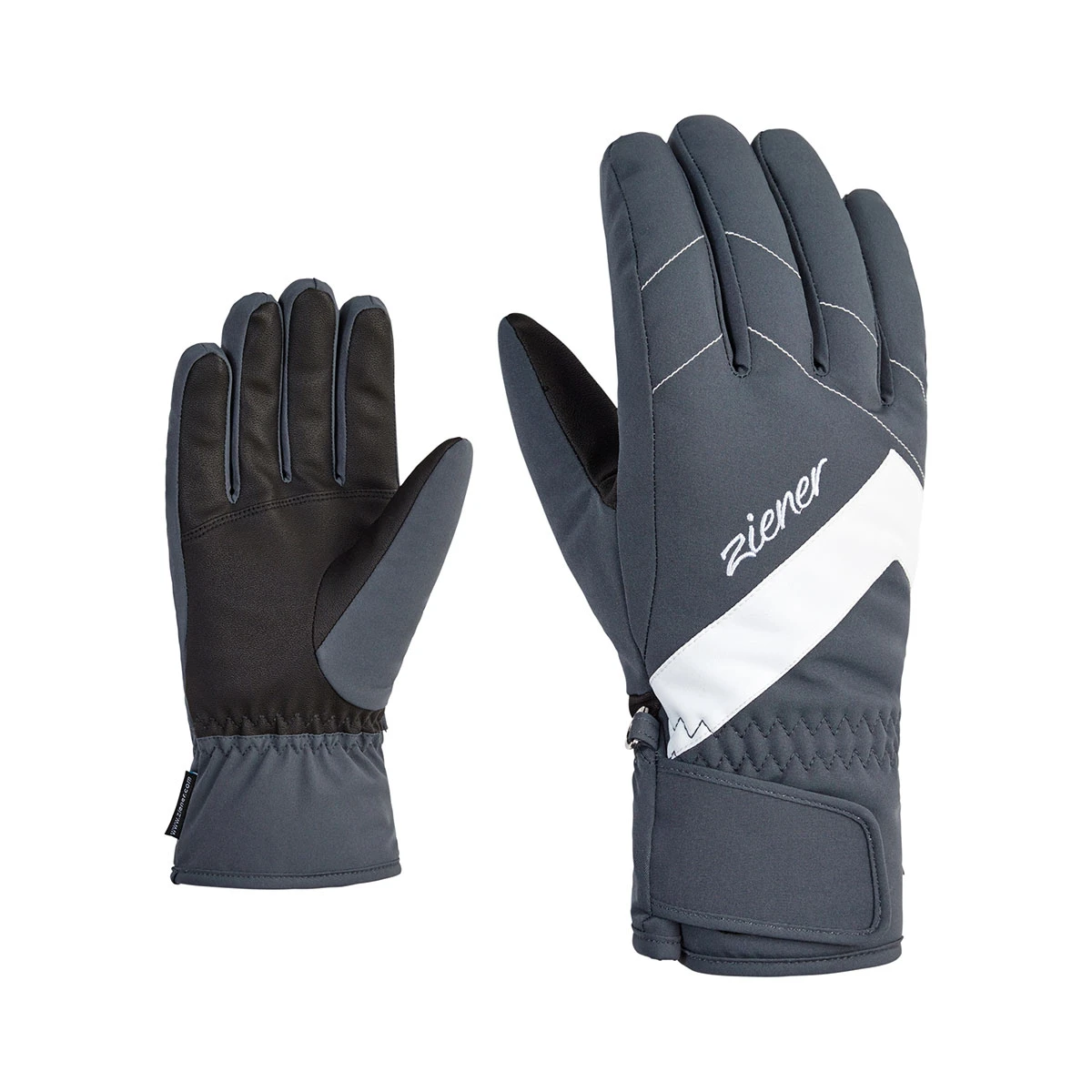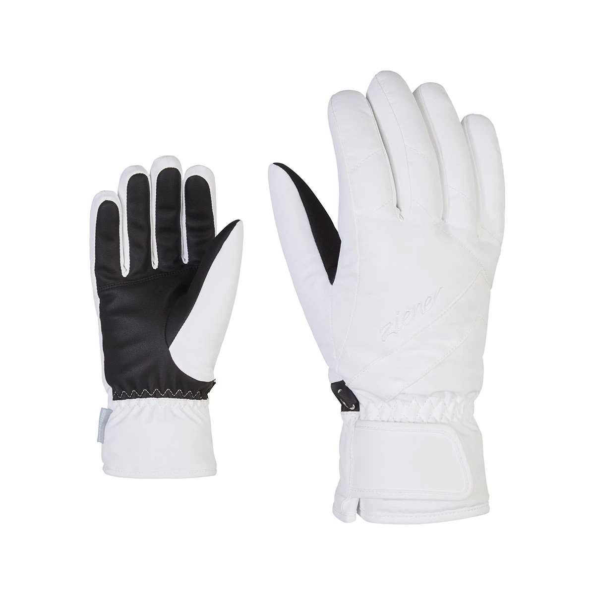 Die sportlichen, modischen ZIENER Damenskihandschuhe KAITI AS® LADY mit wasser- und winddichter ZIENER AQUASHIELD® Membran sorgen für ein sehr warmes und trockenes Klima. Die kompakten Innenhände verleihen optimale Kraftübertragung und Griffgefühl am Skistock. Das elastische Obermaterial schafft perfekte Bewegungsfreiheit. Die Stulpe wird mit Hilfe eines breiten Klettriegels optimal befestigt.