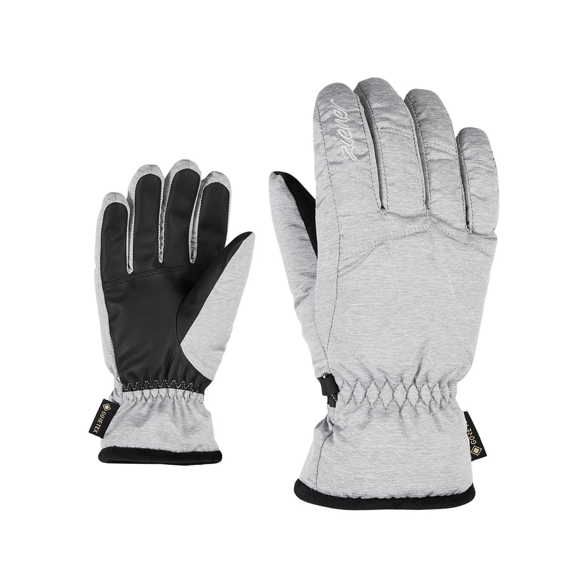 Die modischen, schlichten ZIENER Damenskihandschuhe KARRI GTX LADY sind ausgestattet mit GORE-TEX Inserts und dadurch dauerhaft wasserdicht, winddicht und atmungsaktiv. Die kompakten Innenhände sorgen für optimale Kraftübertragung und Stockgefühl. Der Schnitt ist ergonomisch auf die natürliche Handform angepasst und bietet hohen Tragekomfort. Die enge Stulpe ermöglicht es die Handschuhe unter der Jacke zu tragen. Diverse Oberhandmaterialien wie Melange und Twillstoff sowie das sichtbare Plüschfutter am Bündchen machen sie zu einem echten Hingucker auf der Piste.