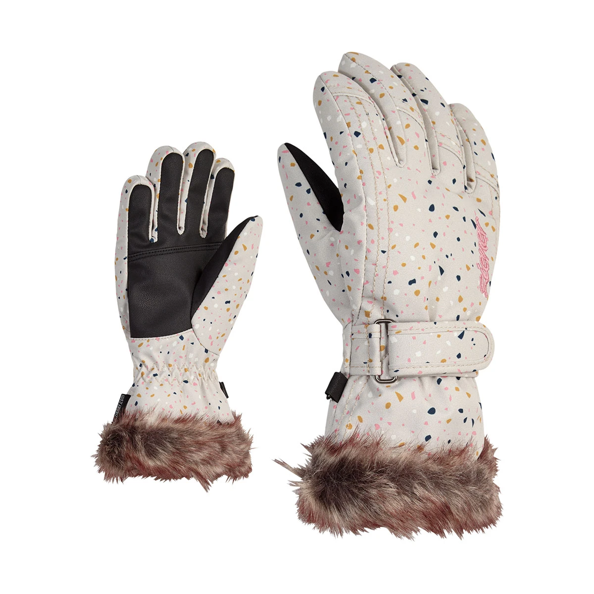 Die schicken, warmen ZIENER Skihandschuhe LIM GIRLS für Mädchen punkten durch angesagte Kunstfellbündchen, bedruckten Stoff und strukturiertes Material. Die weiche Wattierung hält kalte Mädchenhände angenehm warm und verleiht zudem optimales Griffgefühl am Skistock. Der schlanke Schnitt sorgt für eine elegante, mädchenhafte Erscheinung. Die Stulpe wird mit Hilfe eines Riegels optimal befestigt.