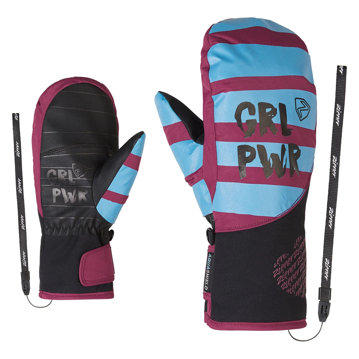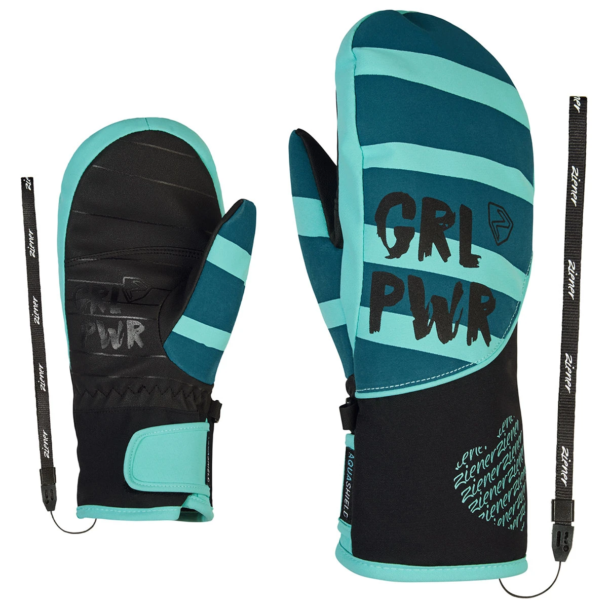 Die warmen, modischen ZIENER Skifäustlinge LIWANI AS® PR MITTEN GIRLS für Mädchen sind mit einem warmen, weichen PrimaLoft® Futter ausgestattet. Der Einsatz der wasser- und winddichten AQUASHIELD® Membran sorgt für ein warmes und trockenes Klima in den Handschuhen. Die bedruckte Innenhand verleiht optimales Griffgefühl am Skistock. Ein breiter Klettriegel ermöglicht es die Handschuhe unter der Jacke zu tragen. Die Handschuhe können mit der Z- Leash am Handgelenk befestigt werden. Der modische, gestreifte Look mit dem coolen Schriftzug sorgt für eine Extraladung GIRL POWER! Das Produkt enthält recyceltes Material – für einen ressourcenschonenden Umgang mit der Umwelt.