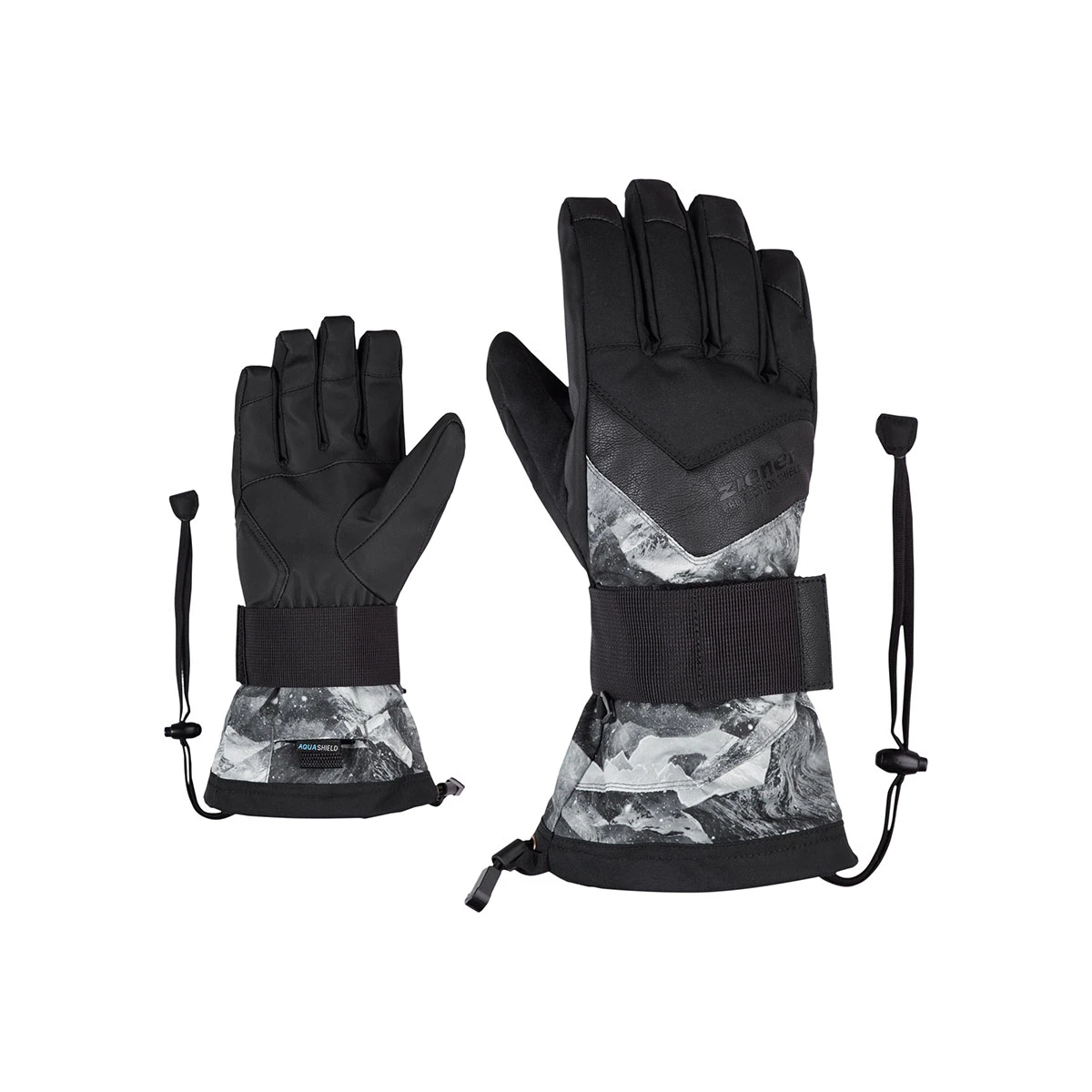 Die stabilen ZIENER Snowboardhandschuhe MILAN AS® sind mit ergonomisch geformten, herausnehmbaren Innenhandgelenk-Protektoren ausgestattet, die einen bequemen Tragekomfort ermöglichen. Eine robuste Innenhandpolsterung mit Schaumstofffutter und Fingerkuppenverstärkungen sorgen dafür, dass beim Tragen des Boards keine Kantenschnitte entstehen. Die Fixierung erfolgt mit einem besonders breitem Rundum-Klettverschluss und dem Cordlock-System, das mit nur einer Hand festgezogen werden kann. Die wasser- und winddichte ZIENER AQUASHIELD® Membran garantiert ein warmes und trockenes Klima. Verschieden strukturierte Stoffe sorgen für den lässigen Look auf dem Brett. Die Leash bietet eine zusätzliche Fixierung am Handgelenk.