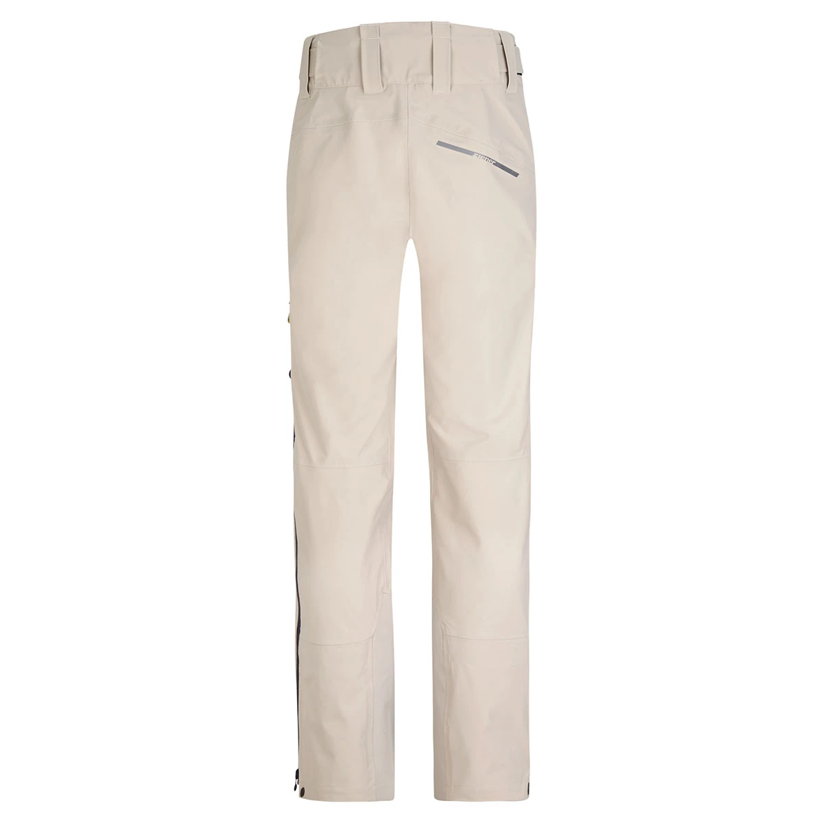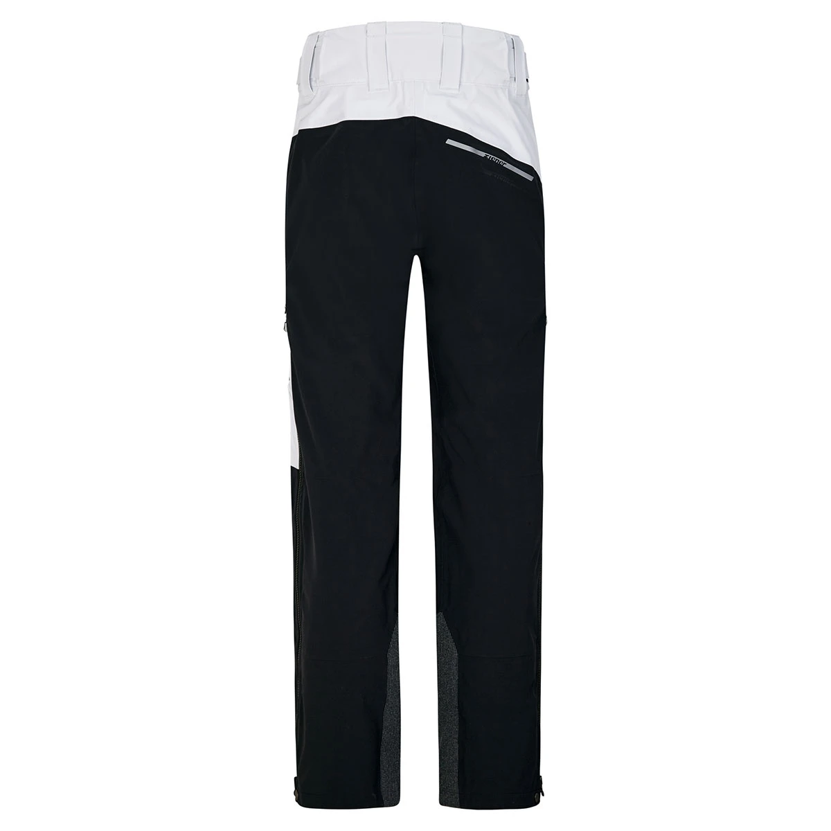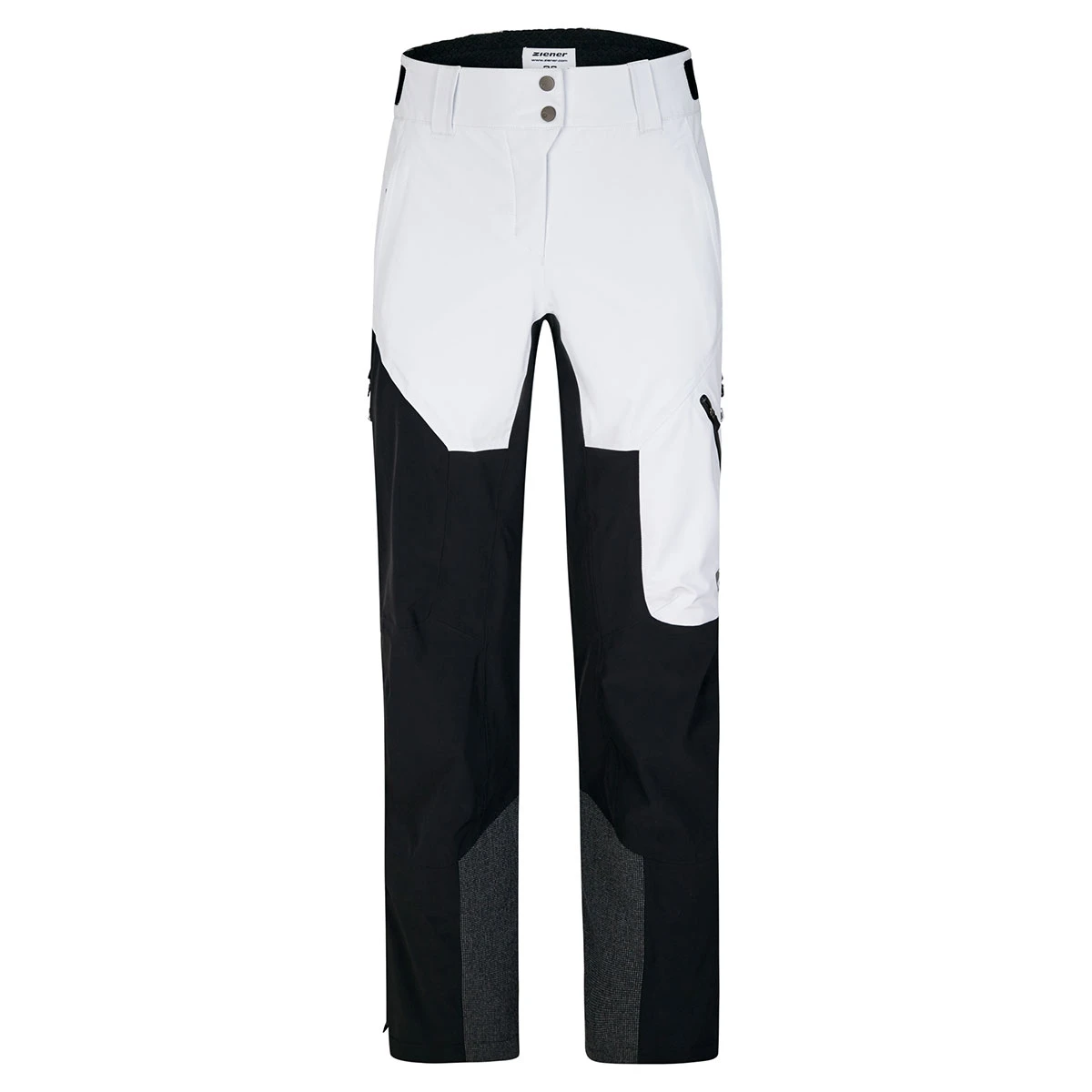 Die funktionelle, leichte ZIENER 3-Lagen-Hose NAFIRA LADY für Damen ist mit der wasser-, winddichten und atmungsaktiven ZIENER AQUASHIELD® Membran (Wassersäule 10.000mm/Atmungsaktivität 10.000g/m²/24h) und voll verschweißten Nähten ausgestattet. Dank der umweltfreundlichen Imprägnierung ist die Hose PFC frei. Weitere technische Details, die zum Funktionskomfort beitragen, sind ein weitenregulierbarer Bund, ein verstärkter Kantenschutz und ein Schneefang am Hosenbein. Zwei Eingrifftaschen und eine Beintasche mit Reißverschluss bieten sicheren Stauraum für die wichtigsten Gegenstände. Die Hose ist zusätzlich mit reflektierenden Designelementen versehen.