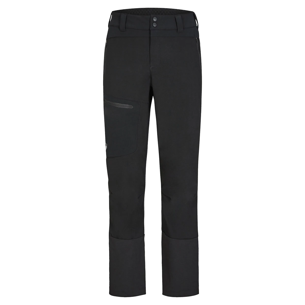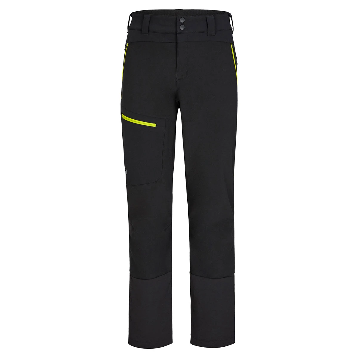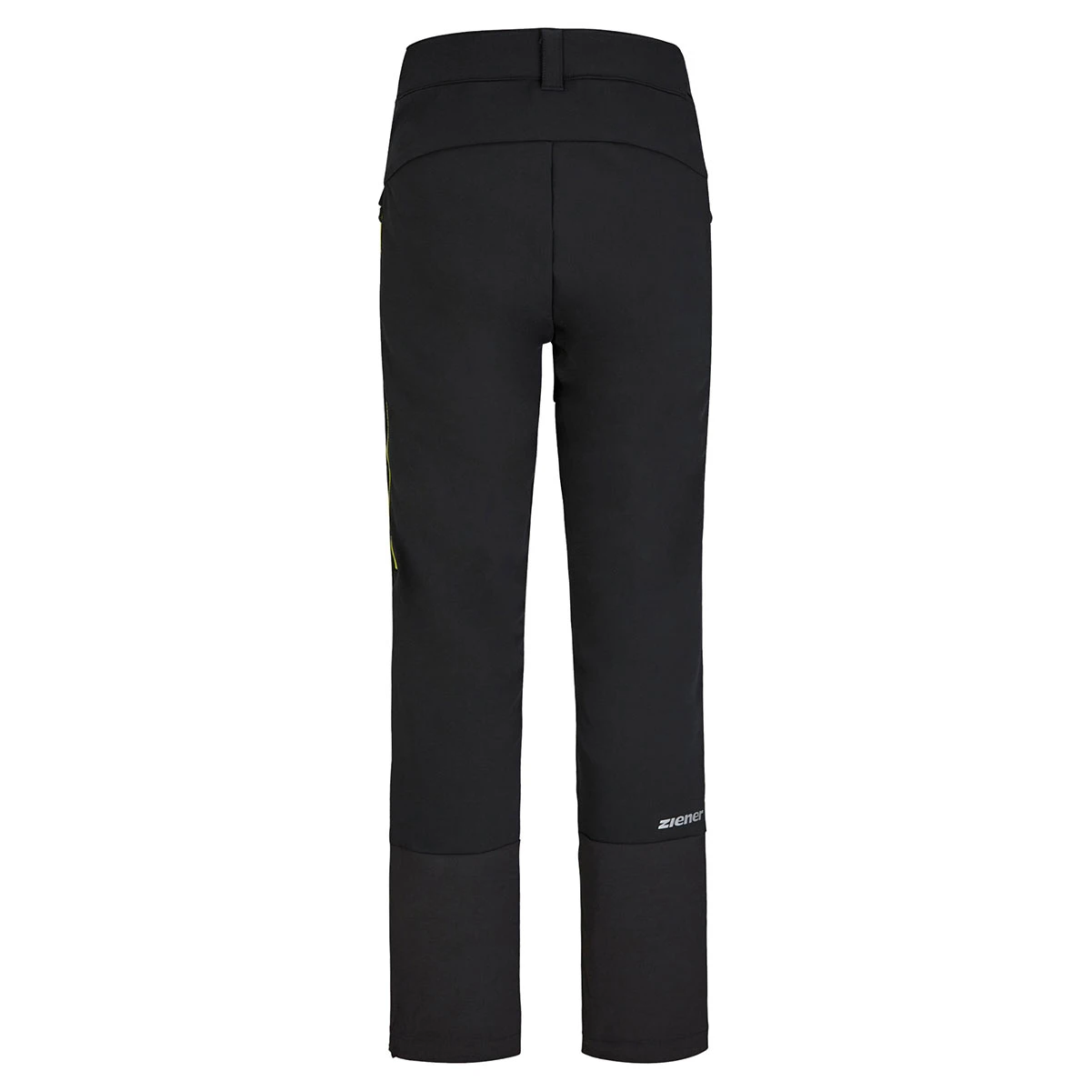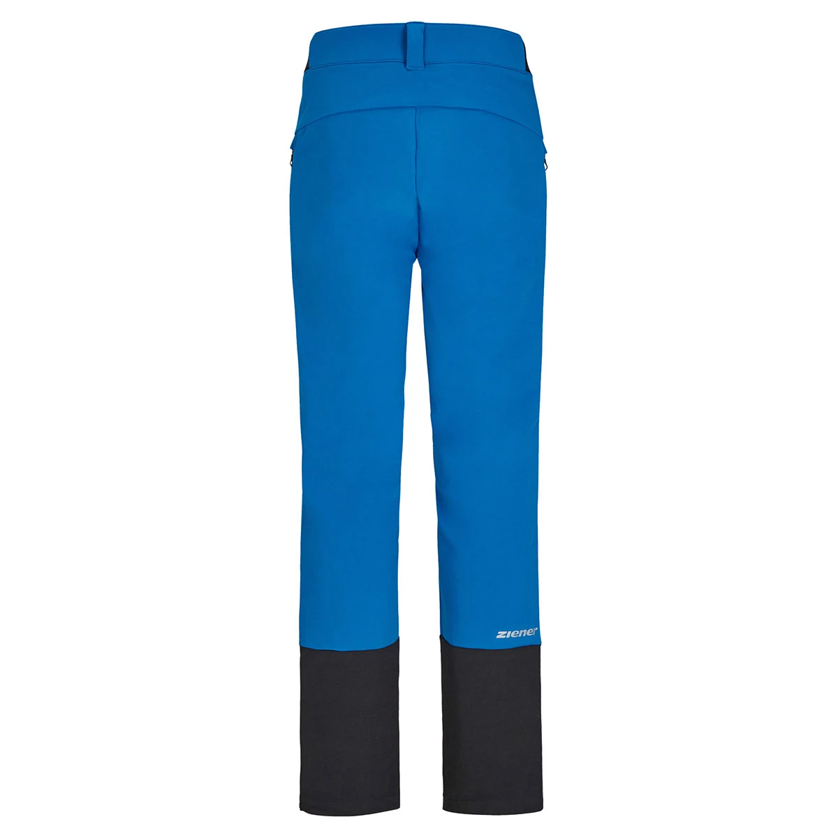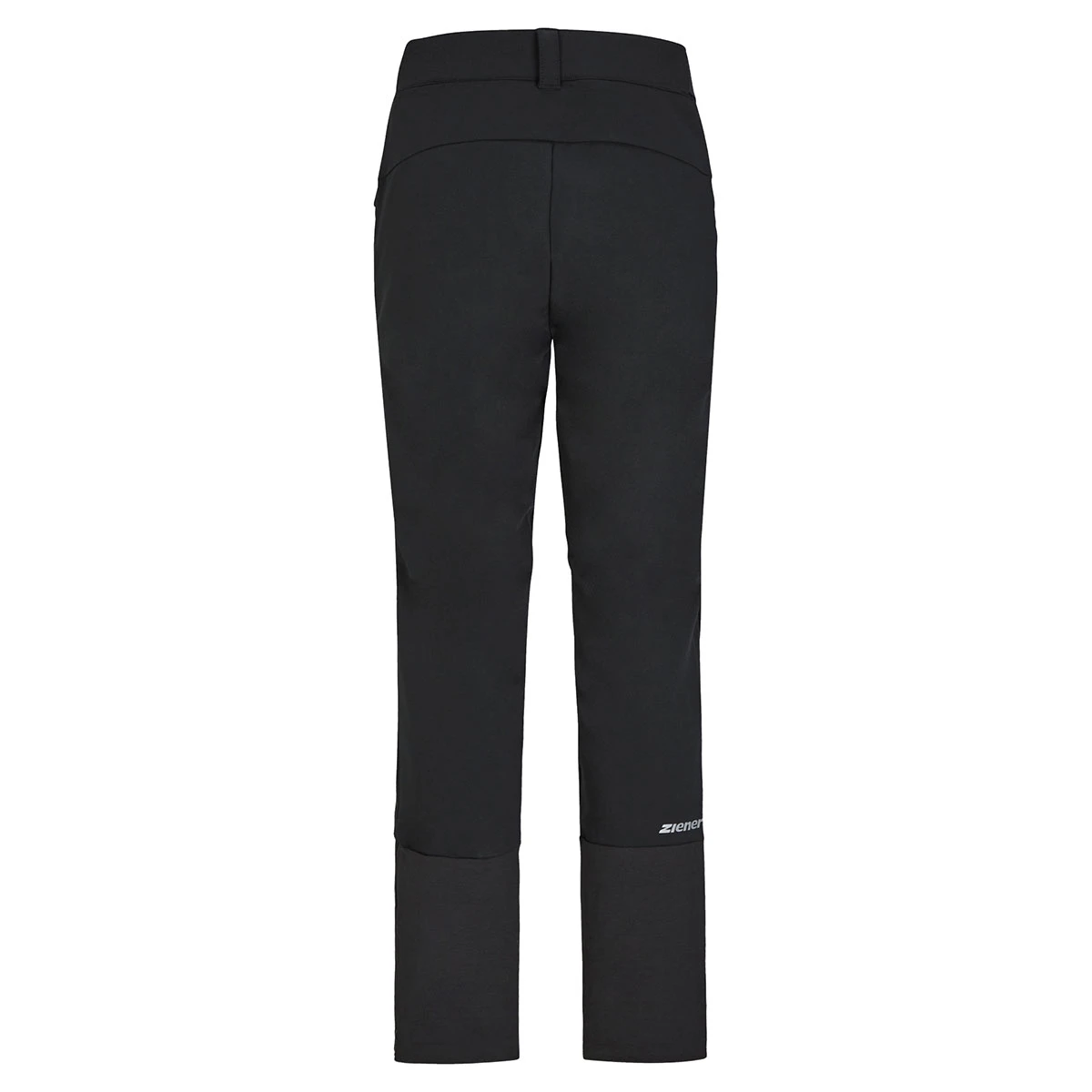 Die funktionelle ZIENER Herren Softshell/Hybrid Tourenhose NARAK MAN ist ein echtes Multitalent. Auf der Vorderseite kommt winddichtes, atmungsaktives und wasserabweisendes ZIENER WINDSHIELD® Material zum Einsatz, während die Rückseite aus elastischem, robustem Stretch-Material besteht – für maximale Bewegungsfreiheit und angenehmen Tragekomfort. Dank der umweltfreundlichen Imprägnierung ist die Tourenhose PFC frei. Sie ist mit einem innovativen, dehnbaren Hosenbund ausgestattet, der sich mit Hilfe einer elastischen Falte den Bewegungen des Körpers optimal anpasst und so besten Komfort und Flexibilität garantiert. Weitere Features dieser hochtechnischen Hose sind ein elastischer Kantenschutz, Ventilationseinsätze am Hosenbein sowie ein Schneefang. In den beiden Eingrifftaschen mit Reißverschluss können kleine Gegenstände sicher verstaut werden. Die Hose ist zusätzlich mit reflektierenden Designelementen versehen.