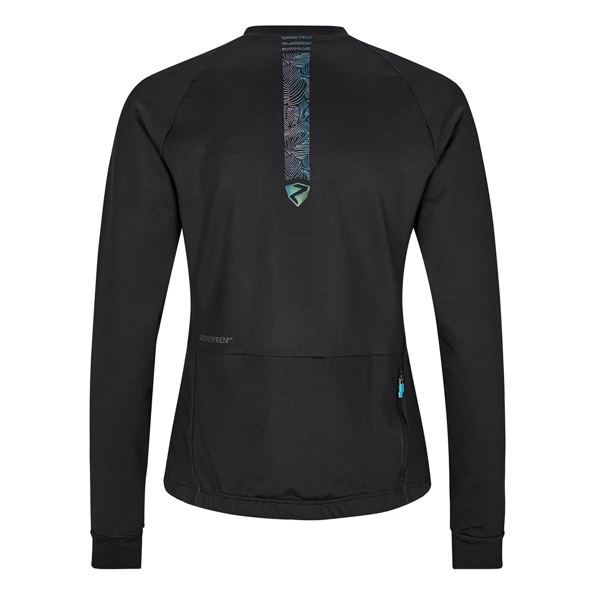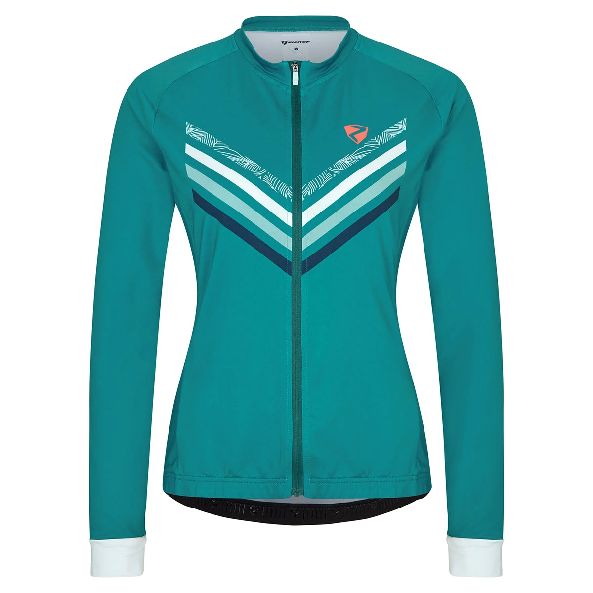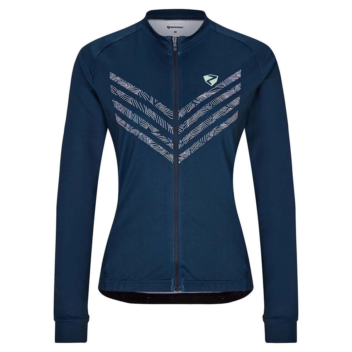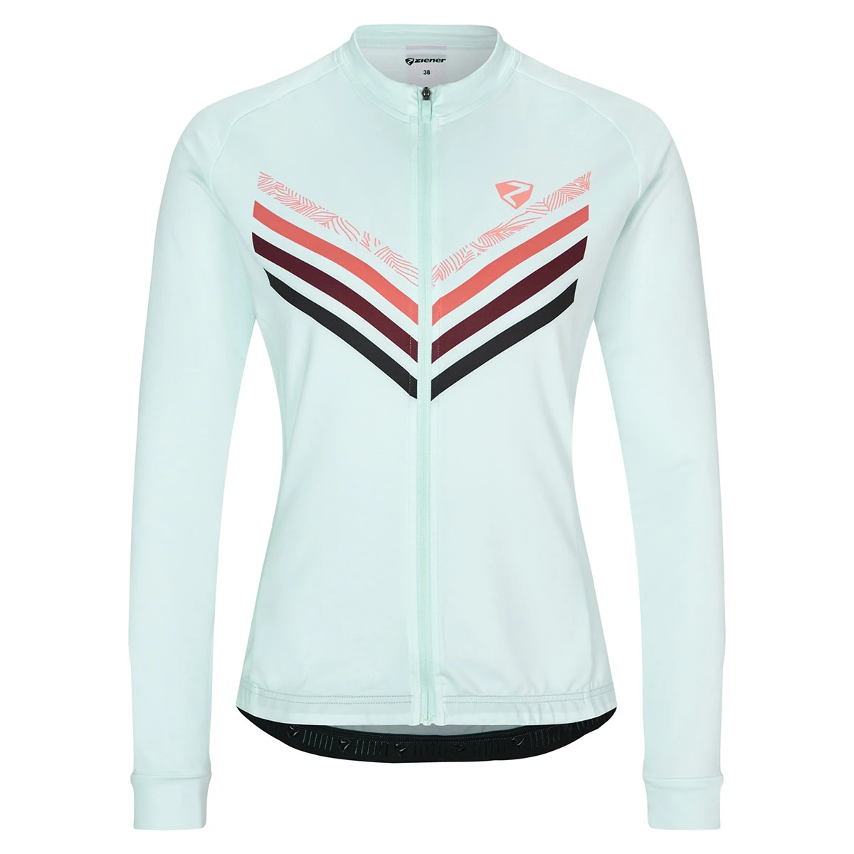 Das funktionelle ZIENER Damen Langarmtrikot NARLA LADY mit durchgehendem Front-Reißverschluss und Stehkragen garantiert dank schnelltrocknendem und stretchigem Material optimalen Tragekomfort. In der Reißverschlusstasche lassen sich die wichtigsten Dinge verstauen. Die Silikonbeschichtung am Saum sorgt für perfekten Halt am Rücken. Eyecatcher ist der modische Druck auf der Brust. Made in Europe.