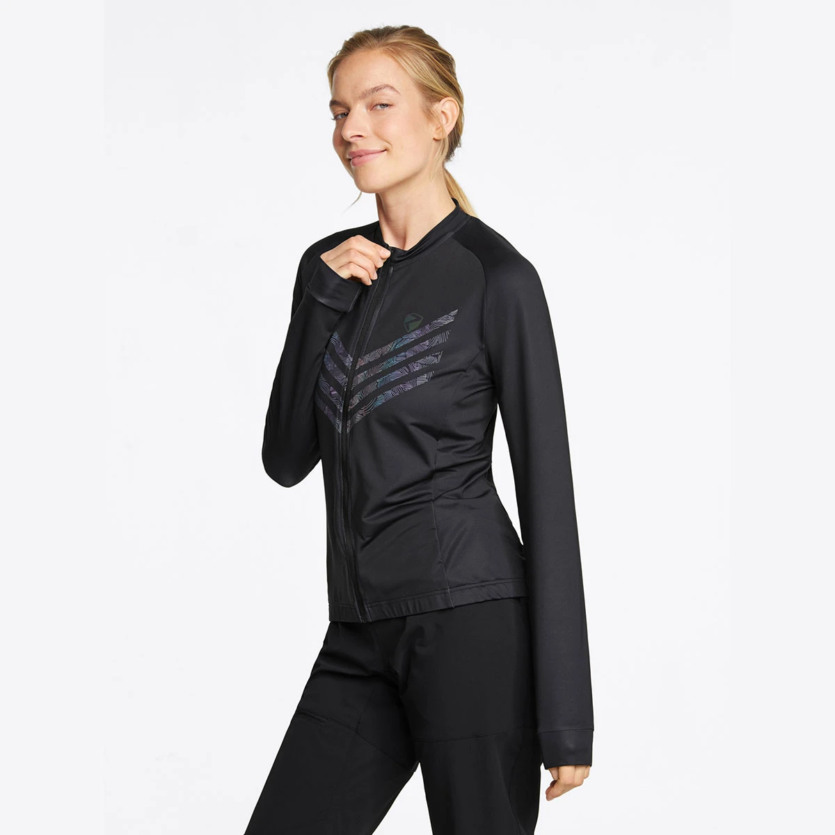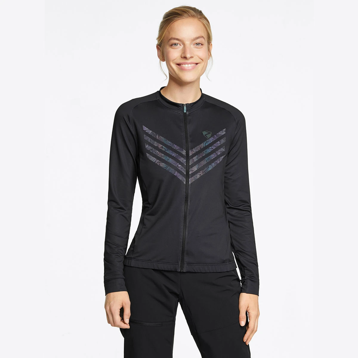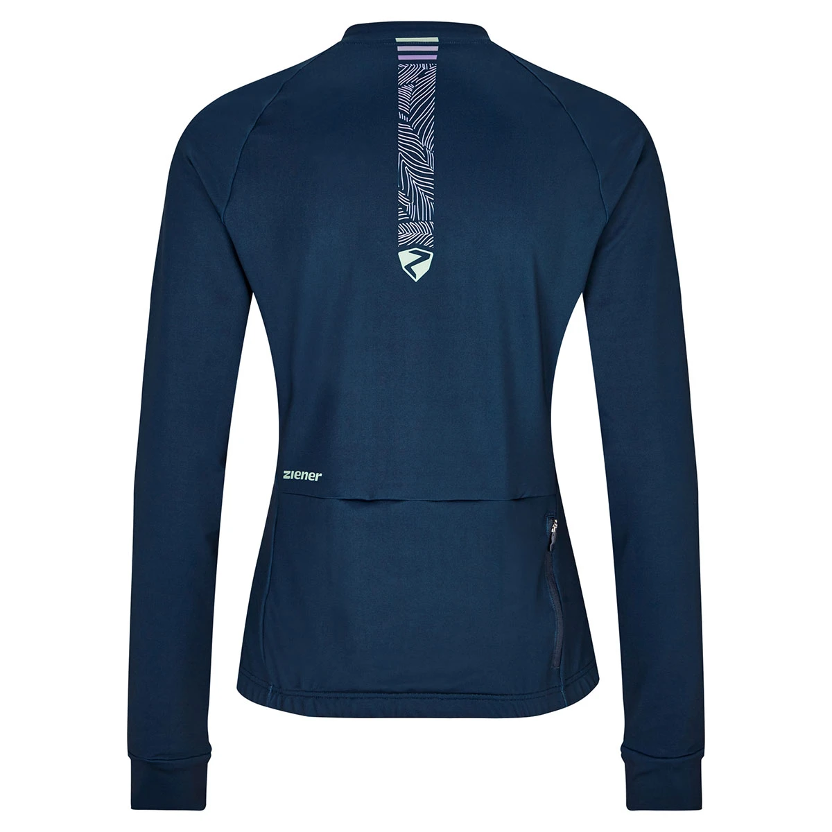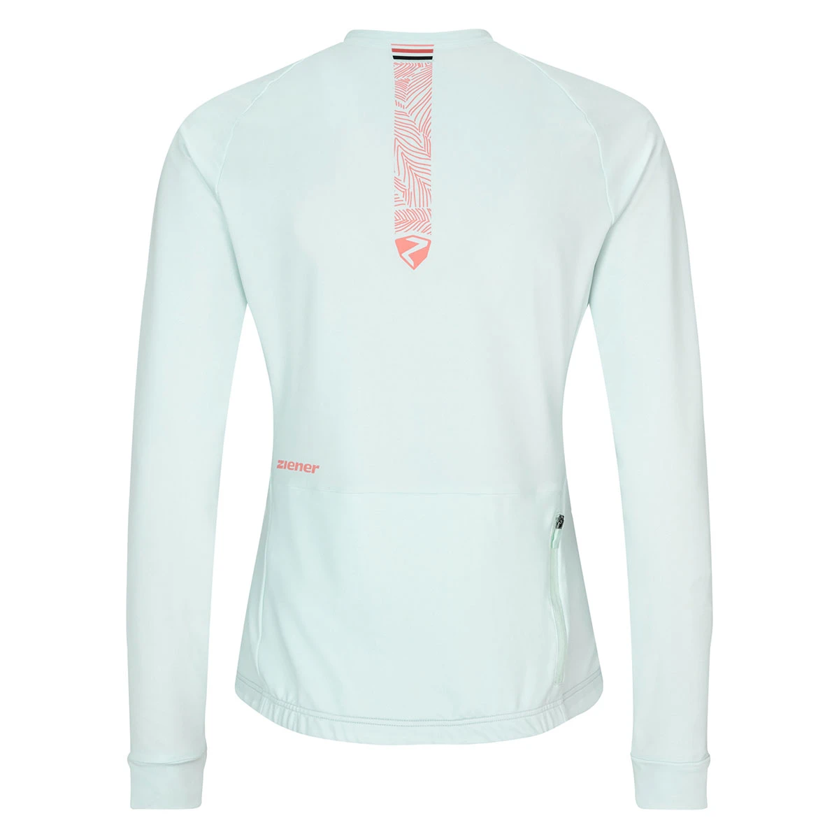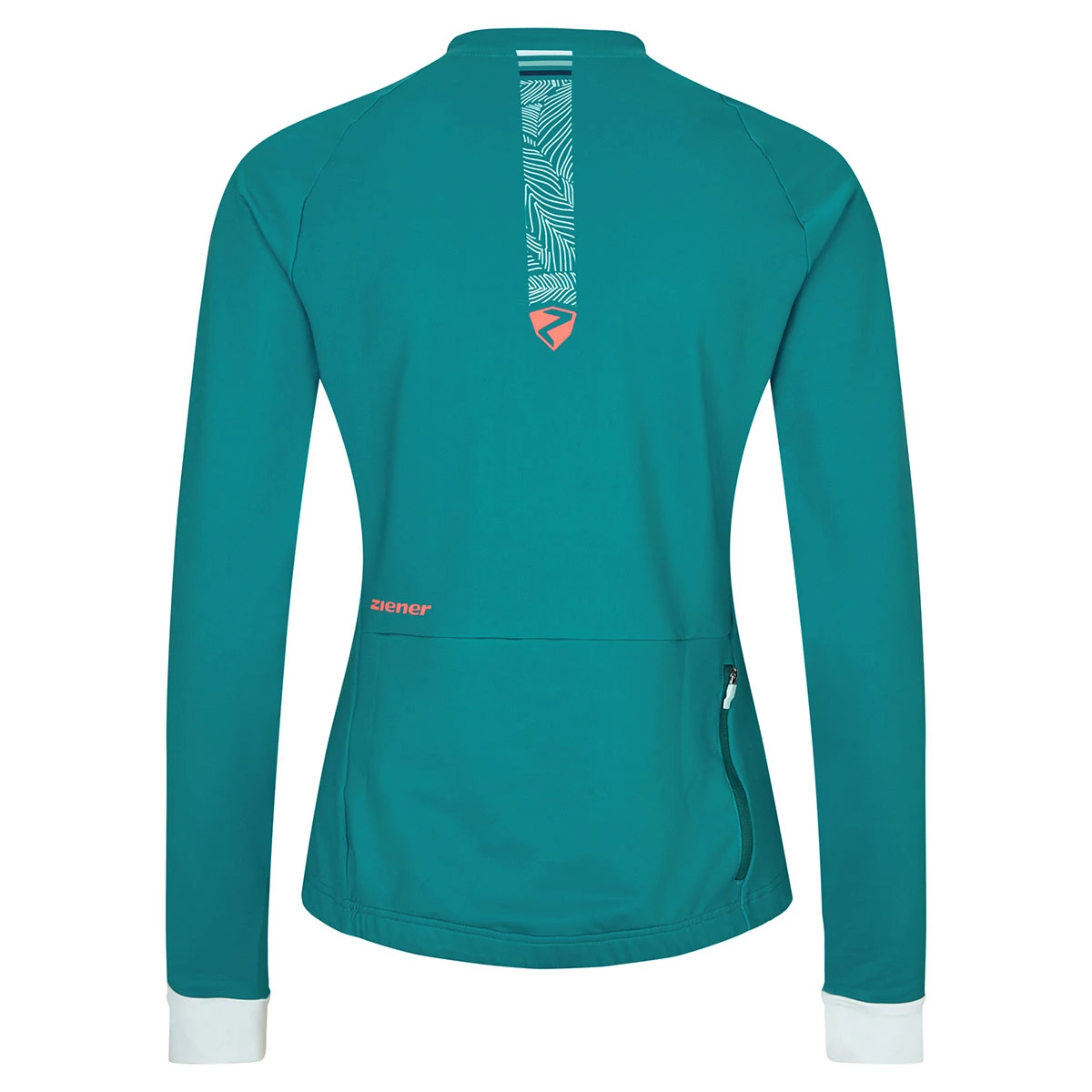Das funktionelle ZIENER Damen Langarmtrikot NARLA LADY mit durchgehendem Front-Reißverschluss und Stehkragen garantiert dank schnelltrocknendem und stretchigem Material optimalen Tragekomfort. In der Reißverschlusstasche lassen sich die wichtigsten Dinge verstauen. Die Silikonbeschichtung am Saum sorgt für perfekten Halt am Rücken. Eyecatcher ist der modische Druck auf der Brust. Made in Europe.