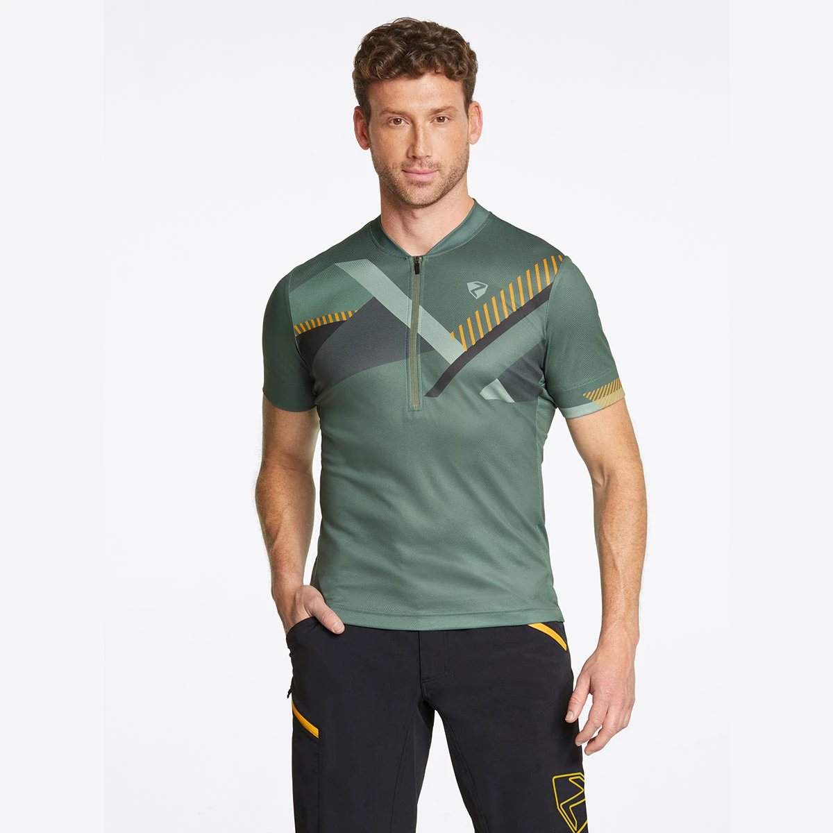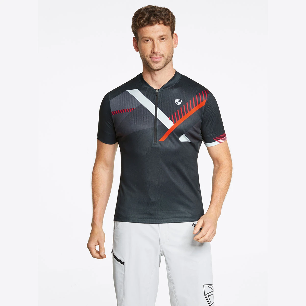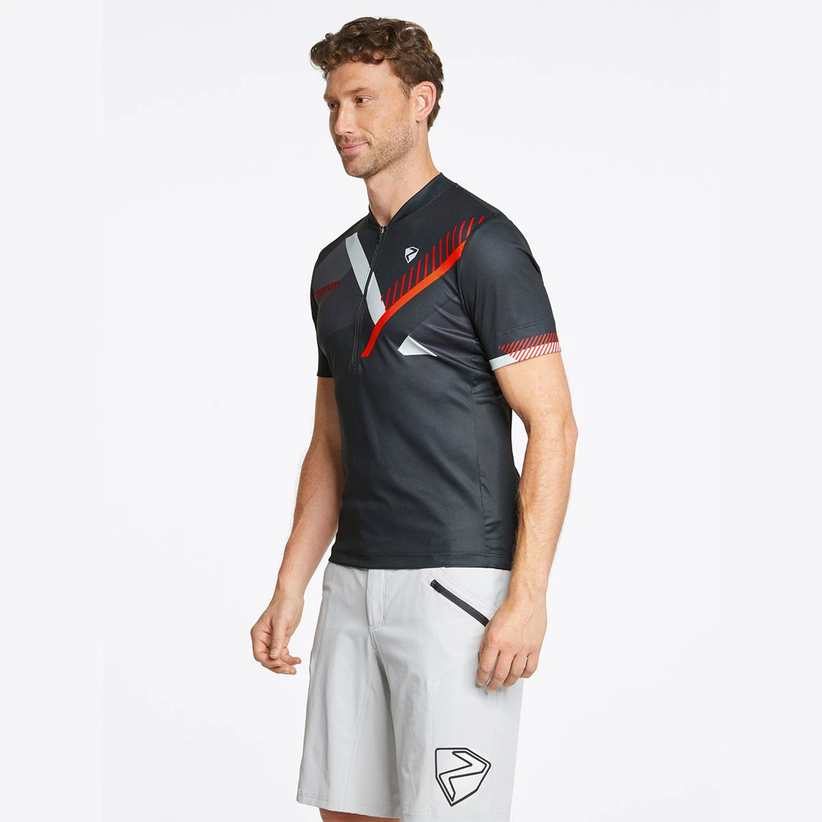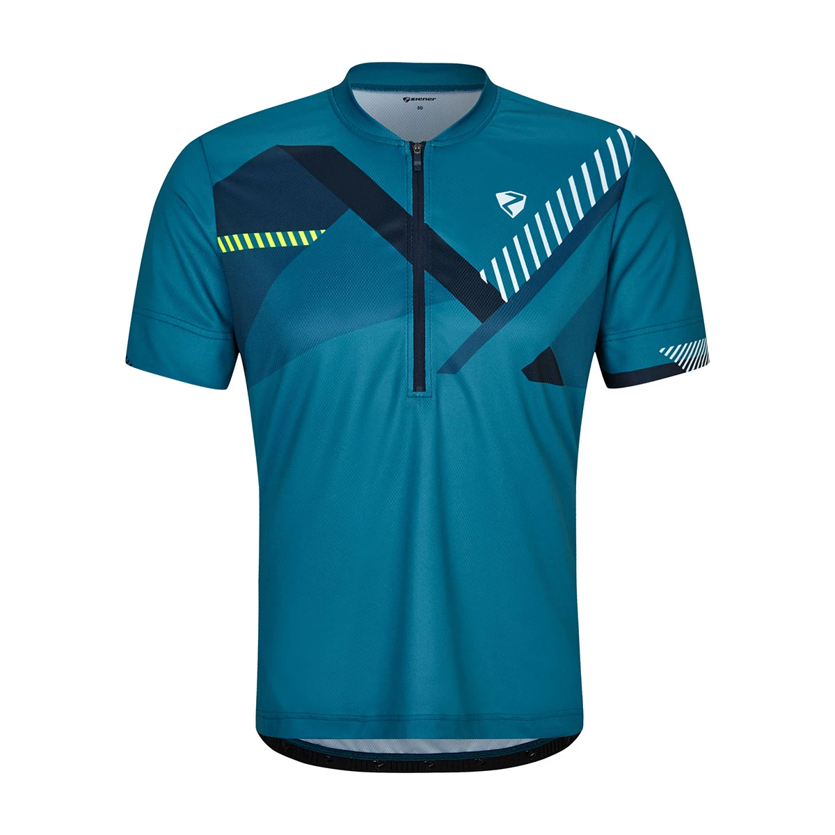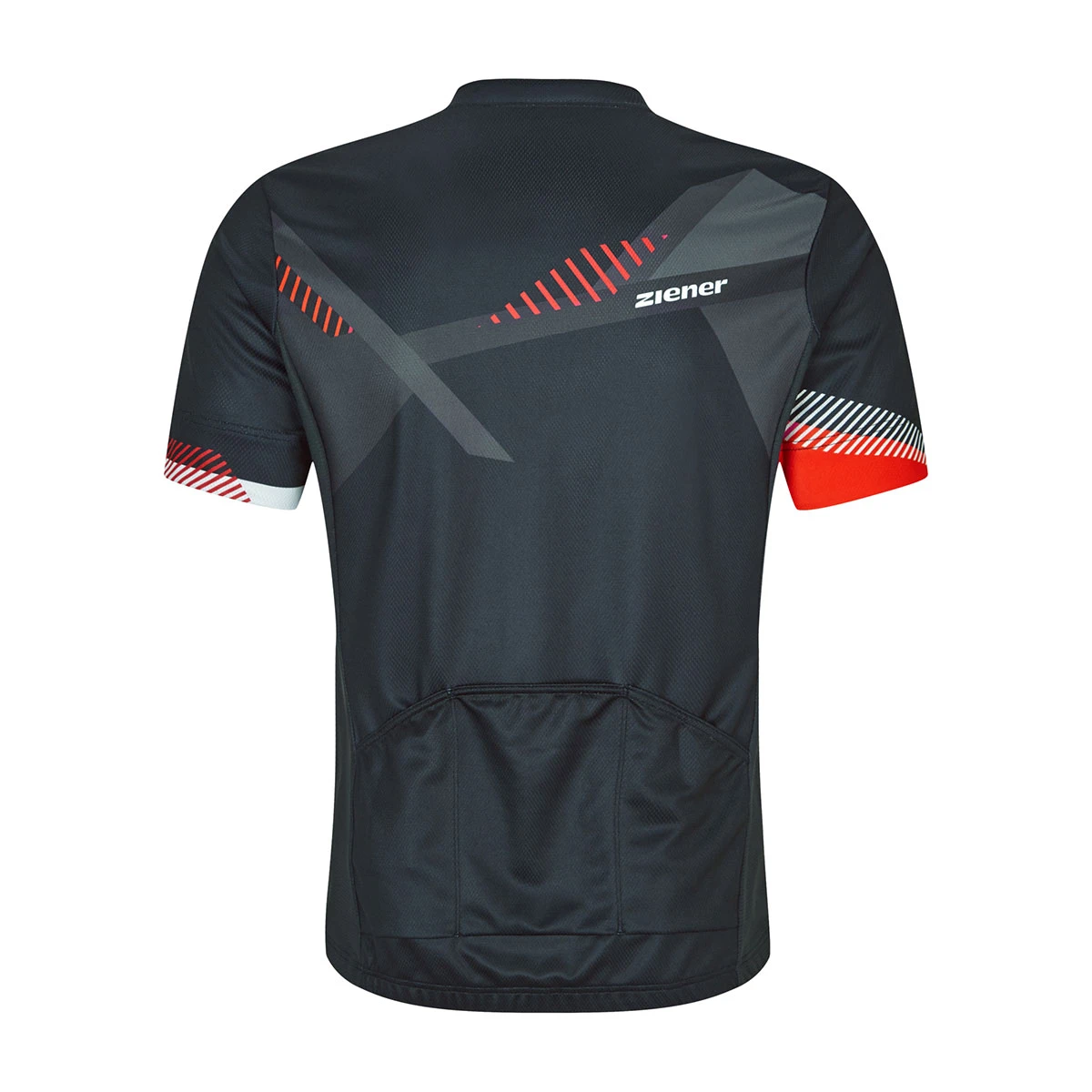 Das funktionelle ZIENER Herren Fahrradtrikot NERAL MAN mit halbem Front-Reißverschluss besitzt Mesh-Einsätze an den Seiten für optimale Belüftung. Die Silikonbeschichtung am Saum sorgt für perfekten Halt und der schnelltrocknende, elastische Stoff für höchste Performance. Die drei Rückentaschen bieten genügend Platz für persönliche Utensilien. Der sportliche Sublimationsdruck und der Stehkragen sorgen für Style auf dem Bike. Made in Europe.