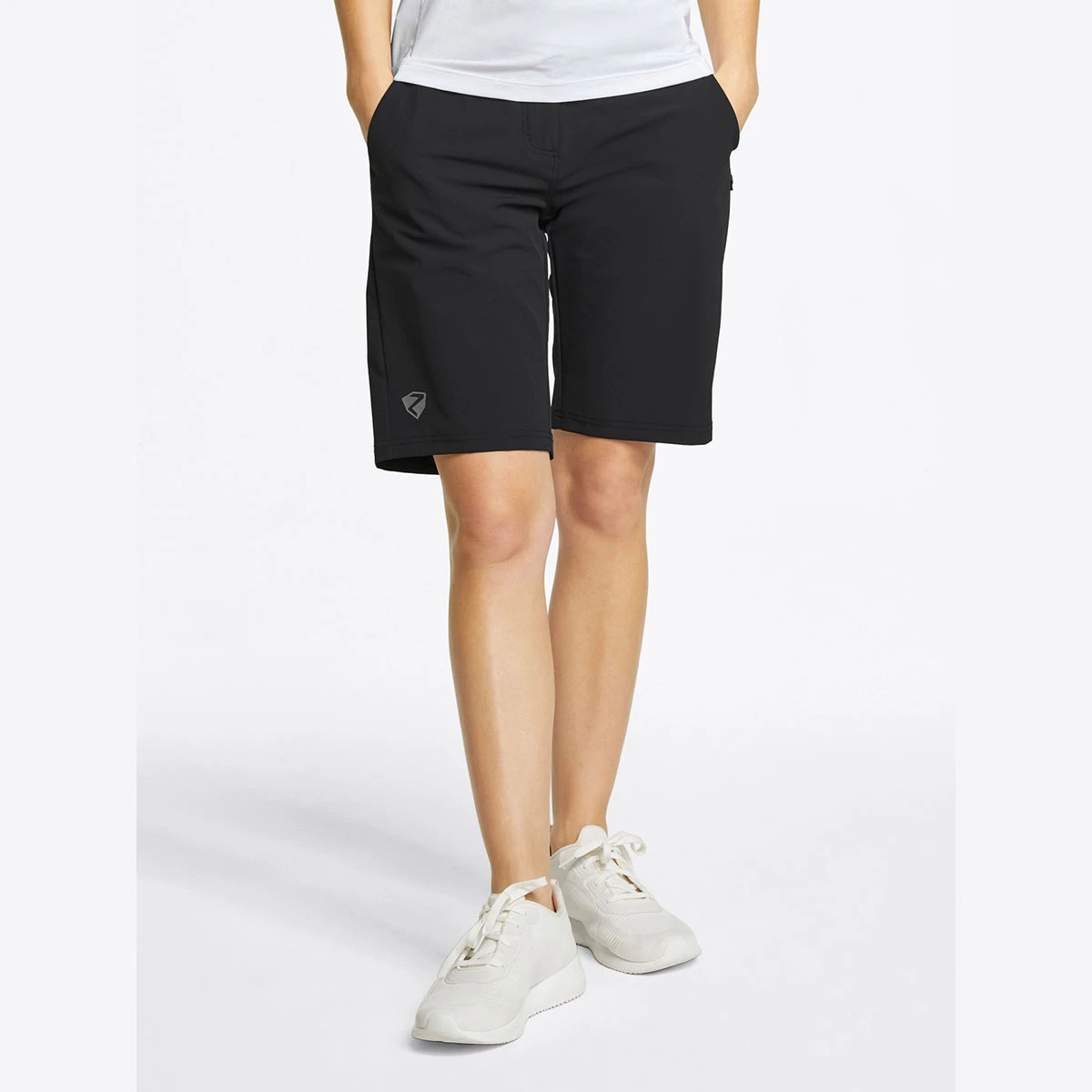Die funktionelle, elastische ZIENER Damen Bikeshorts NILSA X-FUNCTION LADY ist dank des 4-Wege-Stretch-Materials extrem flexibel und passt sich allen Bewegungen perfekt an. Der Bund ist durch einen Klettverschluss weitenregulierbar. Die Shorts verfügt über zwei Eingrifftaschen und einer Beintasche mit Reißverschluss – somit ist genügend Stauraum vorhanden. Die eingehängte Innenhose besitzt ein X-FUNCTION Pad, das ein nahtfreies und reibungsloses Bikevergnügen mit hoher Bewegungsfreiheit auf allen Strecken garantiert.