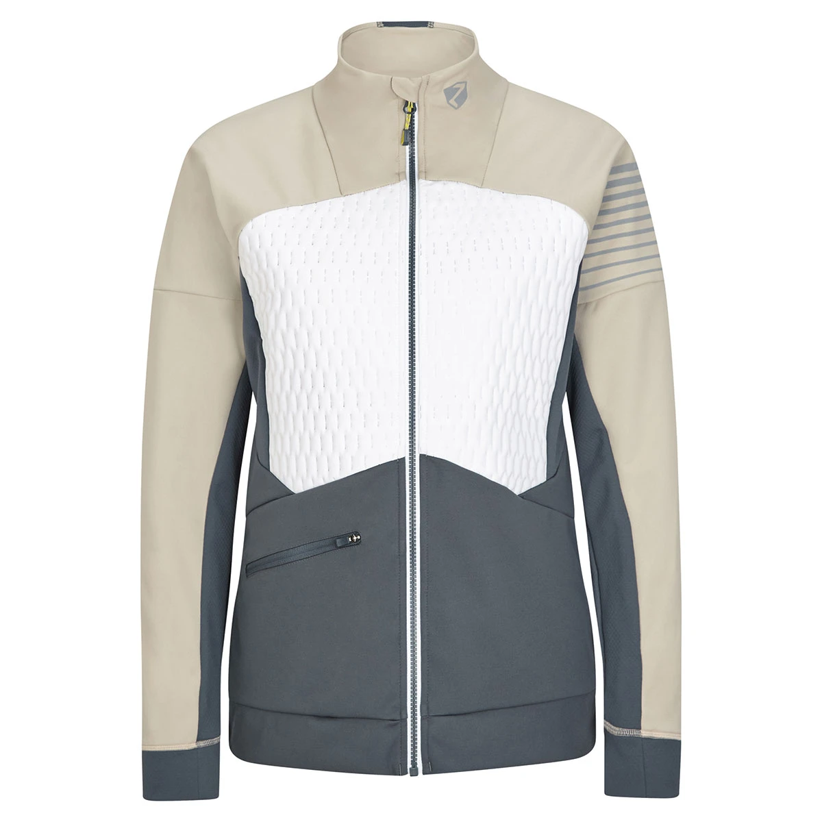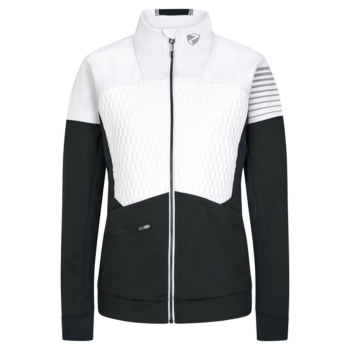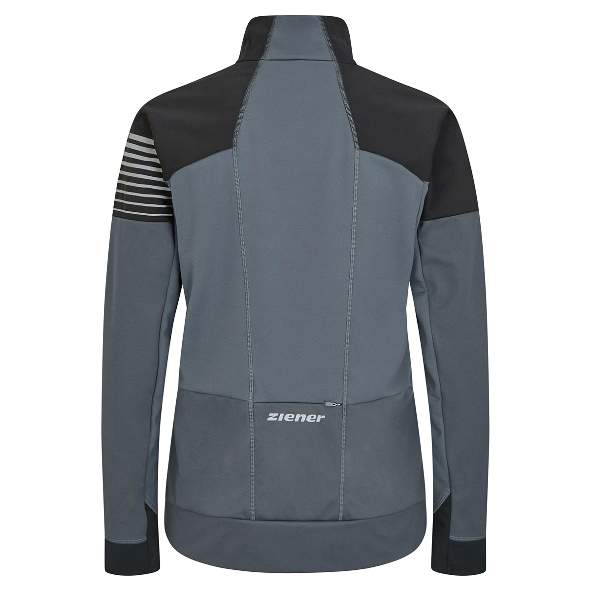 Die funktionelle ZIENER Damen Softshell Jacke NORIKA LADY aus atmungsaktivem Stretchmaterial eignet sich optimal zum Langlaufen. Spezielle Einsätze am Rücken und unter den Armen sorgen für bessere Beweglichkeit und Ventilation, während der Einsatz des atmungsaktiven und winddichten ZIENER WINDSHIELD® Materials das Auskühlen durch den Wind verhindert. Die obere Vorderseite ist zusätzlich mit einer 100g/m² Wattierung ausgestattet. Dank der umweltfreundlichen Imprägnierung ist die Jacke PFC frei. Eine Eingrifftasche mit Reißverschluss vorne garantiert sicheren Stauraum für die wichtigsten Gegenstände und in der Reißverschlusstasche am Rücken lässt sich das Smartphone optimal verstauen. Ein elastischer Saumabschluss sorgt für den perfekten Sitz und reflektierende Designelemente erhöhen die Sichtbarkeit.