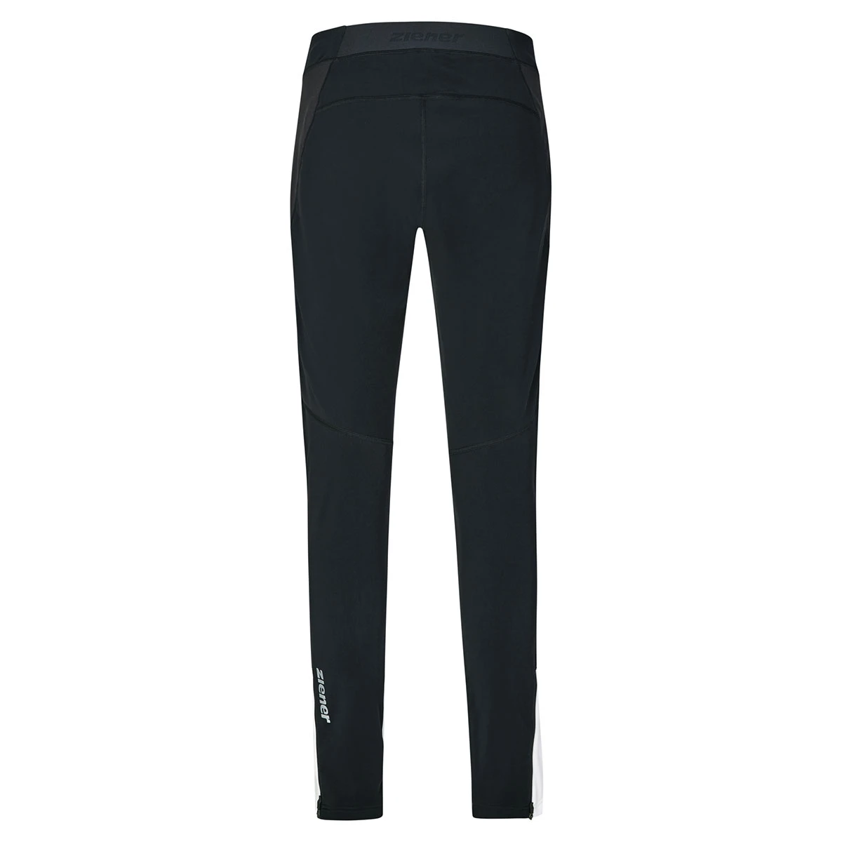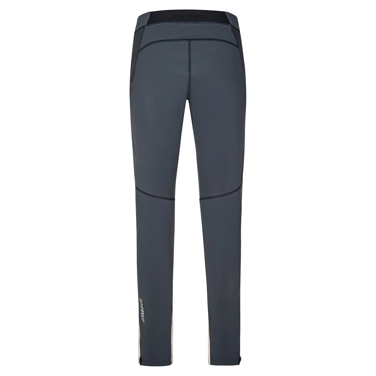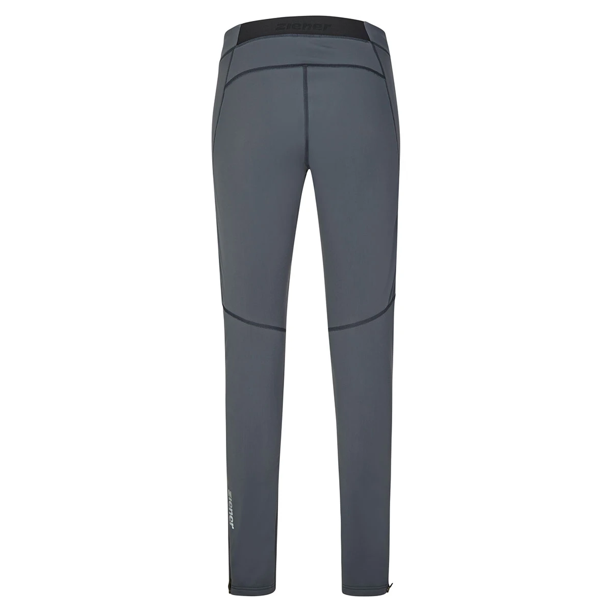 Die funktionelle ZIENER Damen Tights NURA LADY mit SLIM FIT Passform eignet sich perfekt zum Langlaufen. Sie besteht aus einem intelligenten Materialmix aus winddichtem Softshell-Material auf der Vorderseite (ZIENER WINDSHIELD®) und einer elastischen Rückseite aus 4-Wege Stretch-Material – für maximale Bewegungsfreiheit und hohen Tragekomfort. Dank der umweltfreundlichen Imprägnierung ist die Hose PFC frei. Der Reißverschluss am Beinende sorgt für einen optimalen Abschluss der Hose über dem Schuh. Der bequeme Bund wird mit einer Kordel reguliert. Die Tights ist mit einer Reißverschlusstasche vorne ausgerüstet – perfekt zum Verstauen von kleinen Gegenständen. Die Hose ist mit reflektierenden Designelementen versehen. Made in Europe.