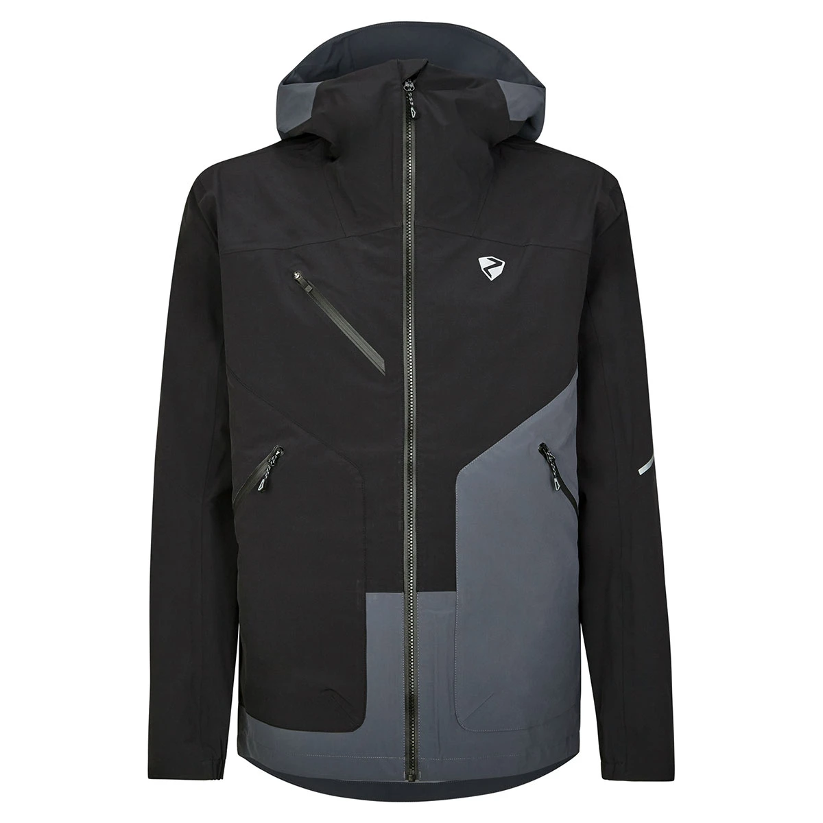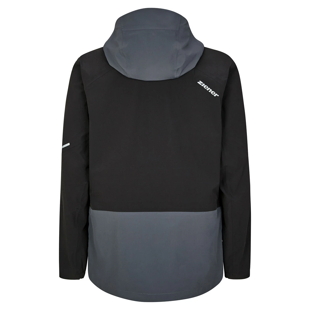 Die funktionelle, leichte ZIENER Herren 3-Lagen-Jacke NURO MAN ist mit der wasser-, winddichten und atmungsaktiven ZIENER AQUASHIELD® Membran (Wassersäule 10.000mm/Atmungsaktivität 10.000g/m²/24h) ausgerüstet. Dank der umweltfreundlichen Imprägnierung ist die Jacke PFC frei. Weitere Details wie voll verschweißte Nähte, zwei Eingrifftaschen und eine Brusttasche mit Reißverschluss machen die 3-Lagen-Jacke zu einem Highlight. Des Weiteren lassen sich Smartphone und Brille optimal in den eigens dafür vorgesehenen Taschen verstauen. Falls man ins Schwitzen kommt, lässt sich der Klimahaushalt durch die Unterarmventilation schnell regulieren. Die Jacke ist zudem mit reflektierenden Designelementen und einem herausnehmbaren Schneefang versehen.