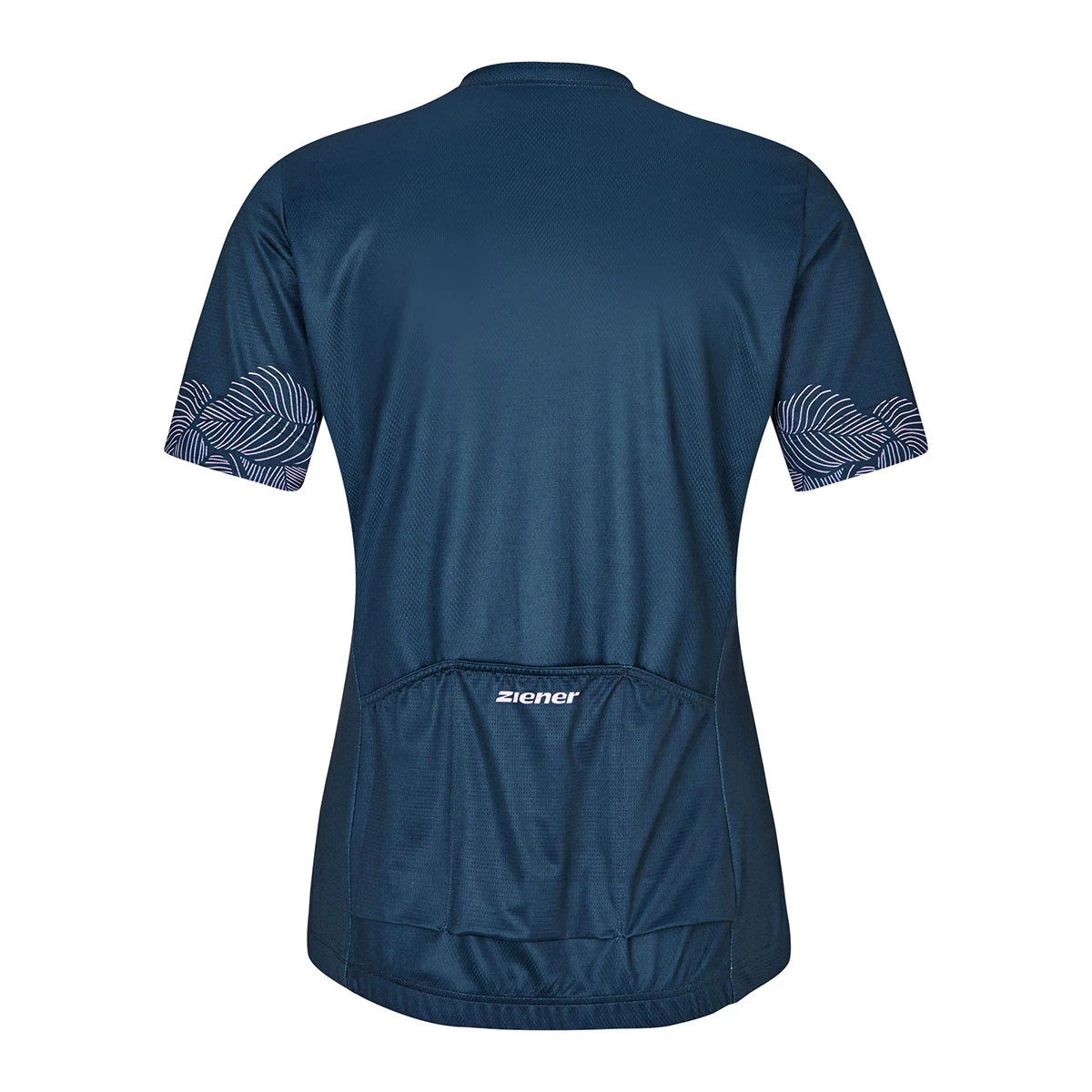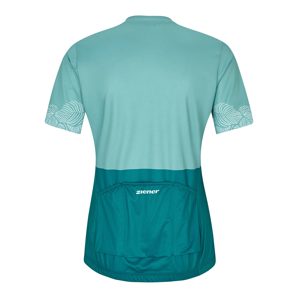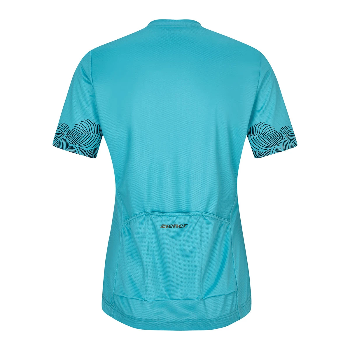 Das funktionelle ZIENER Damen Fahrradtrikot NYMERIA LADY mit durchgehendem Front-Reißverschluss besitzt Mesh-Einsätze an den Seiten für optimale Belüftung. Die Silikonbeschichtung am Saum sorgt für perfekten Halt und der schnelltrocknende, elastische Stoff für höchste Performance. Die drei Rückentaschen bieten genügend Platz für persönliche Utensilien. Der modische Allover-Sublimationsdruck sorgt für Style auf dem Bike. Made in Europe.
