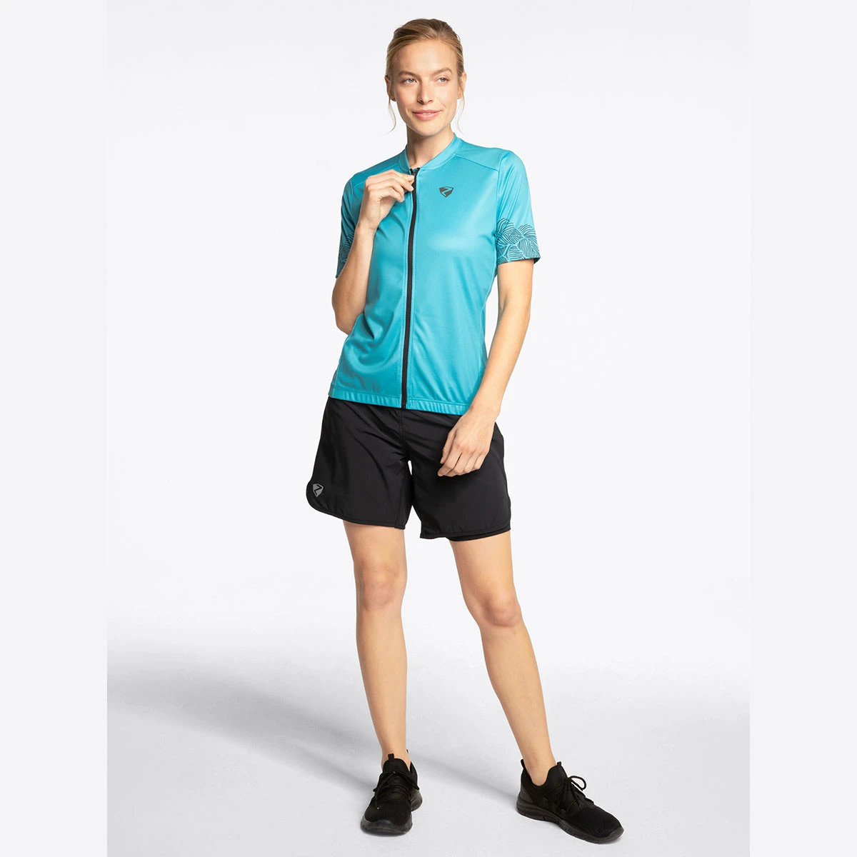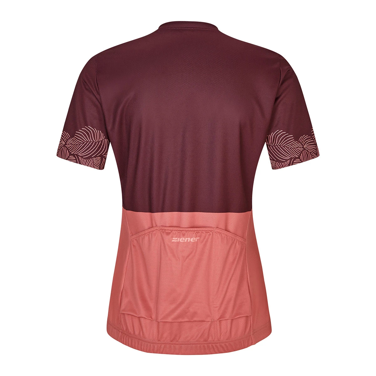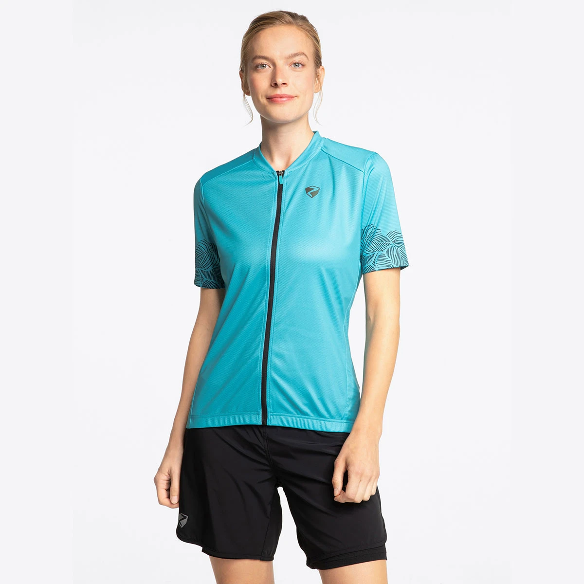 Das funktionelle ZIENER Damen Fahrradtrikot NYMERIA LADY mit durchgehendem Front-Reißverschluss besitzt Mesh-Einsätze an den Seiten für optimale Belüftung. Die Silikonbeschichtung am Saum sorgt für perfekten Halt und der schnelltrocknende, elastische Stoff für höchste Performance. Die drei Rückentaschen bieten genügend Platz für persönliche Utensilien. Der modische Allover-Sublimationsdruck sorgt für Style auf dem Bike. Made in Europe.