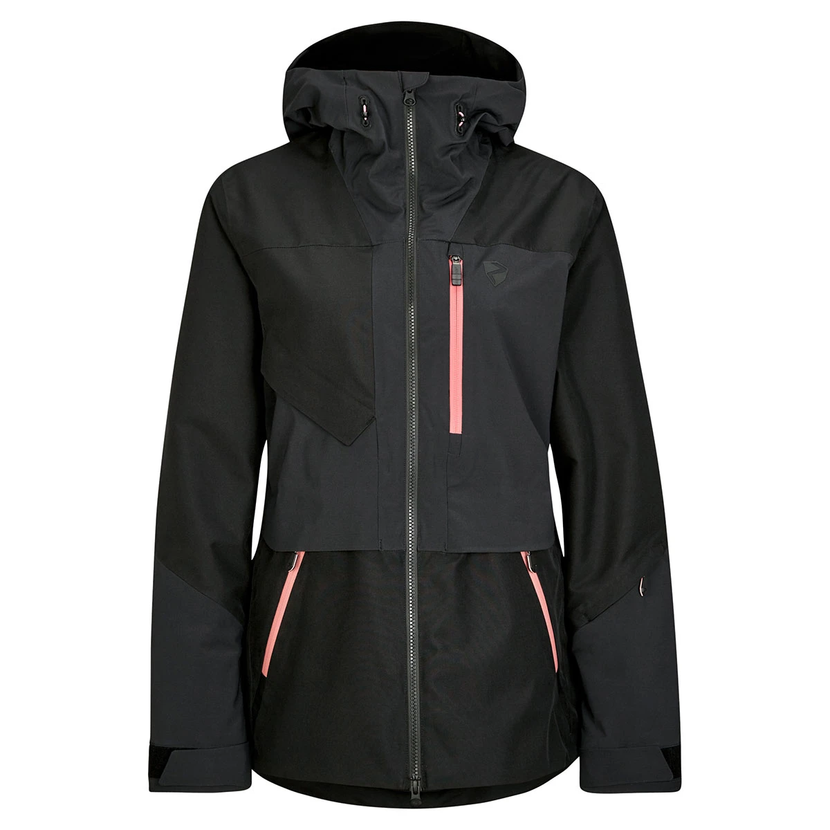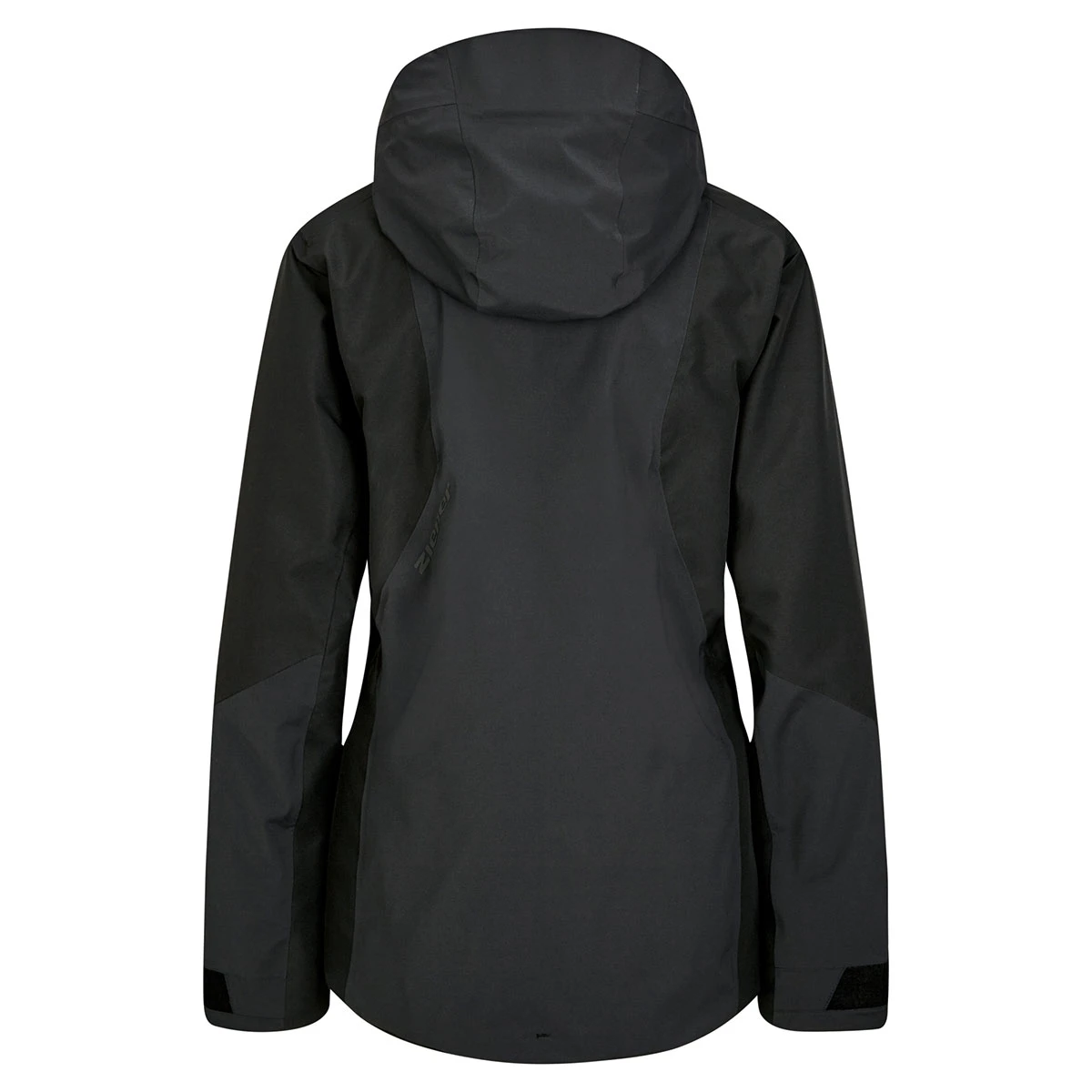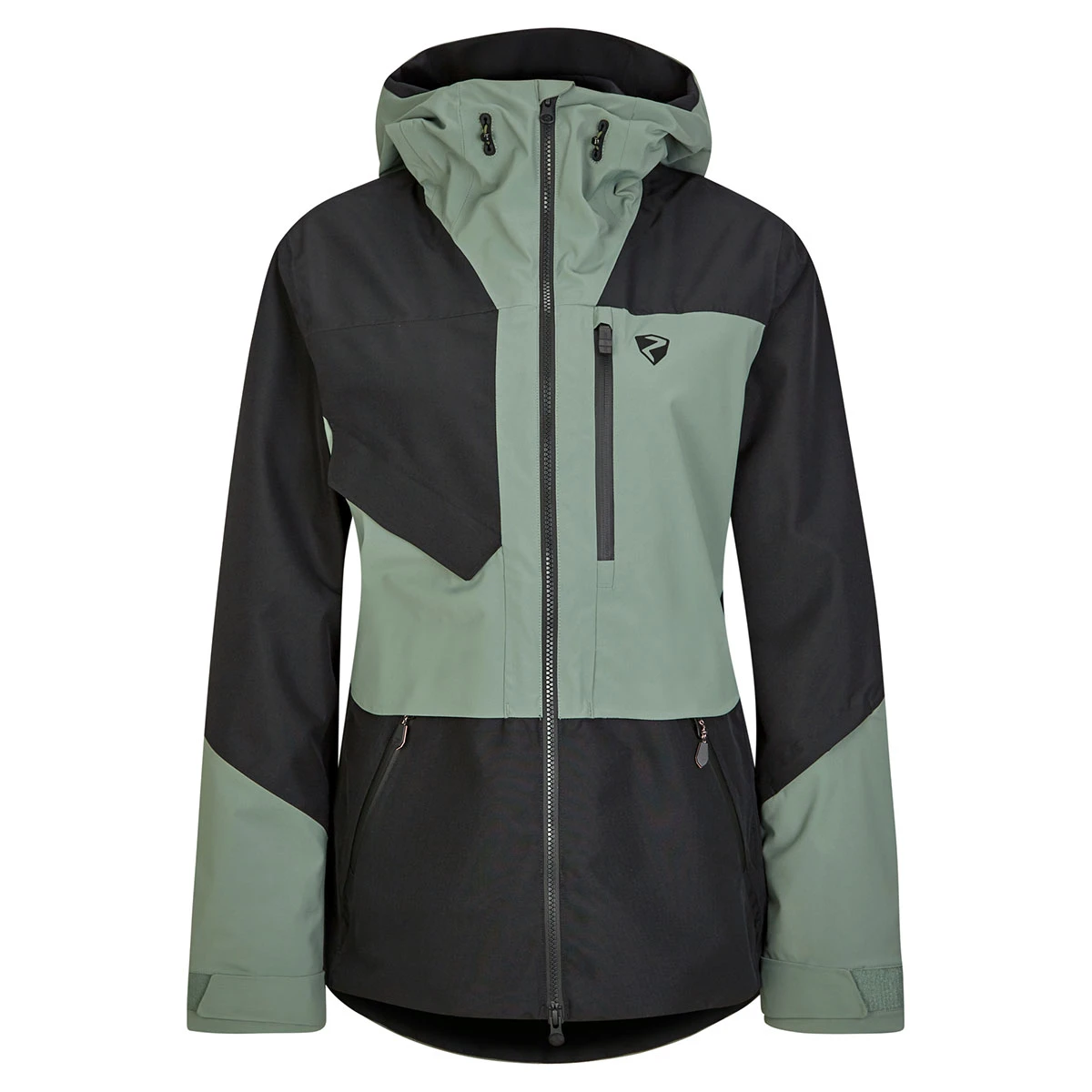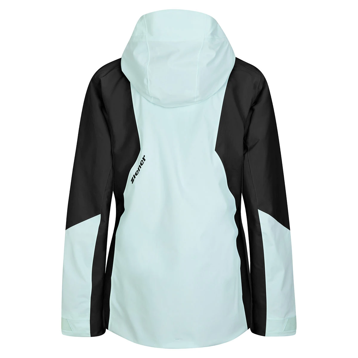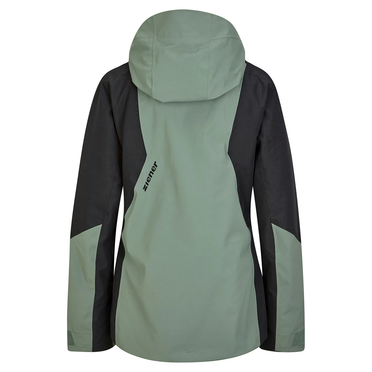 Die hochfunktionelle, unwattierte ZIENER Damen Skijacke TARSI LADY punktet mit recycelten Materialien. Die atmungsaktive, wasser- und winddichte sowie nachhaltige SYMPATEX® Membran (Wassersäule 20.000mm/Atmungsaktivität 15.000g/m²/24h) und das PONTETORTO Futter mit natürlicher Wolle sorgen für ein angenehmes, trockenes Klima und ein perfektes Wärmegleichgewicht. Dank der umweltfreundlichen Imprägnierung ist die Jacke PFC frei. Das Besondere: die Jacke und die Skihose der Freeride Kollektion können mit Hilfe eines Reißverschlusses zu einem Einteiler verbunden werden. Dies verhindert das Verrutschen der Jacke und das Eindringen von Schnee und Kälte. Technische Details wie die verstellbare Funktionskapuze, elastische Ärmelinnenbündchen und ein weitenregulierbarer Saum sorgen für einen perfekten Funktionskomfort. Ein extra hoher Kragen hält den Hals an kalten Tagen schön warm. Wasserdichte Reißverschlüsse und ein abnehmbarer Schneefang gehören ebenfalls zur Basisausstattung. In den beiden Eingrifftaschen und der Brusttasche lassen sich die wichtigsten Dinge dank Reißverschluss sicher verstauen. Die seitliche Skipasstasche, Taschen für Ski- und Sonnenbrillen sowie eine Smartphone Tasche machen die Jacke zu einem unverzichtbaren Begleiter auf der Piste. Und sollte es doch mal zu warm werden, sorgen die Belüftungsmöglichkeiten unter den Armen für die nötige Ventilation. Die wichtigsten Nähte sind verschweißt. Das Produkt enthält recyceltes Material – für einen ressourcenschonenden Umgang mit der Umwelt.