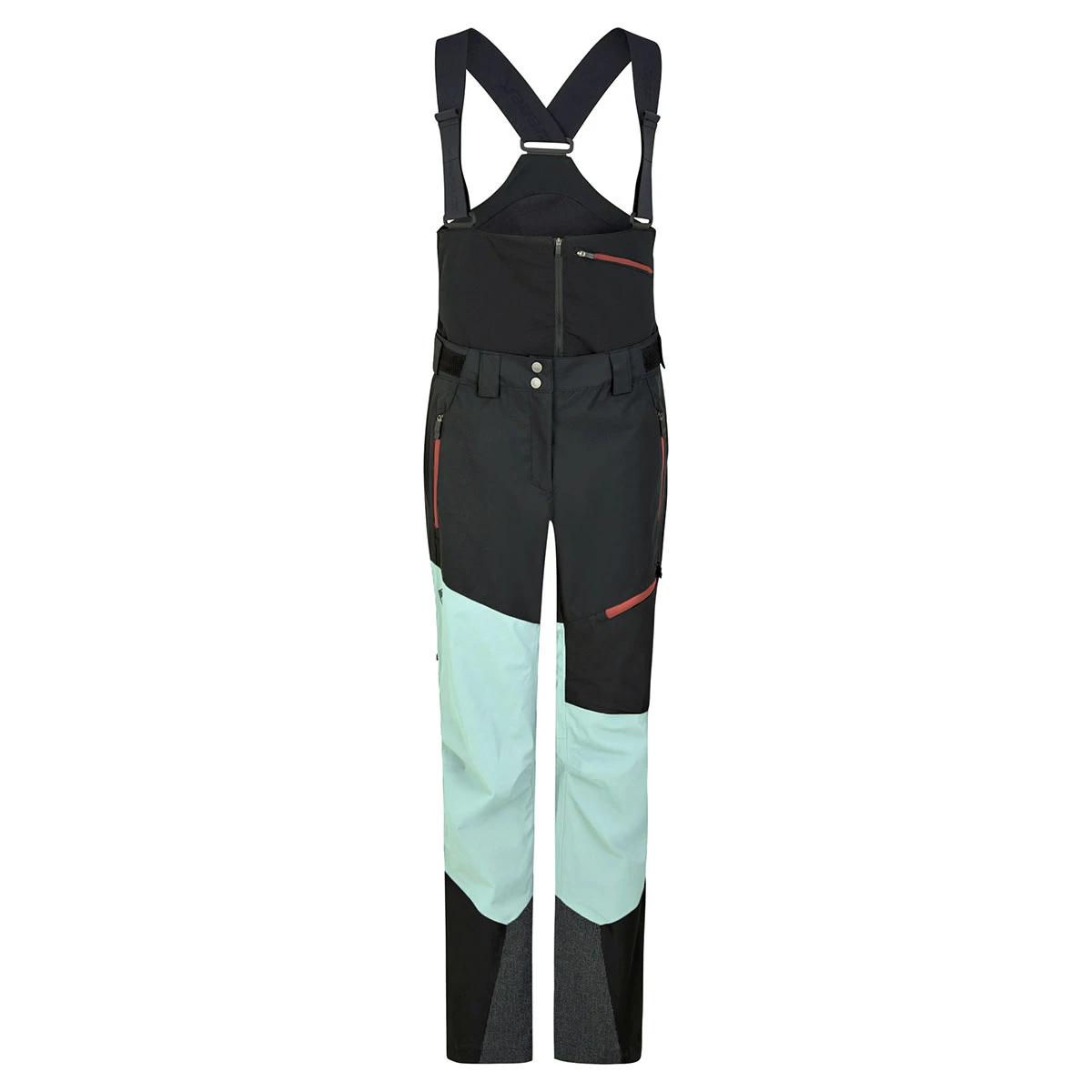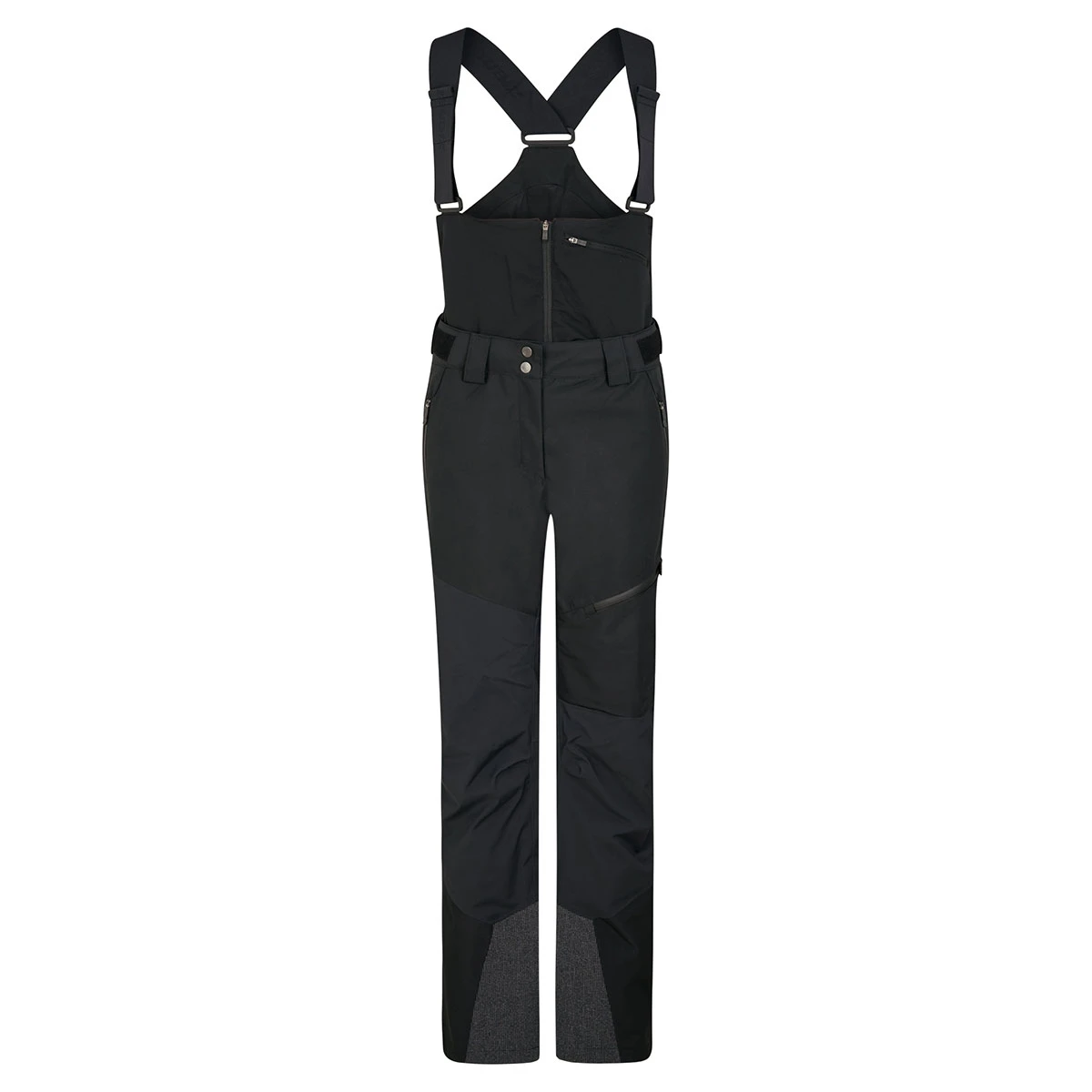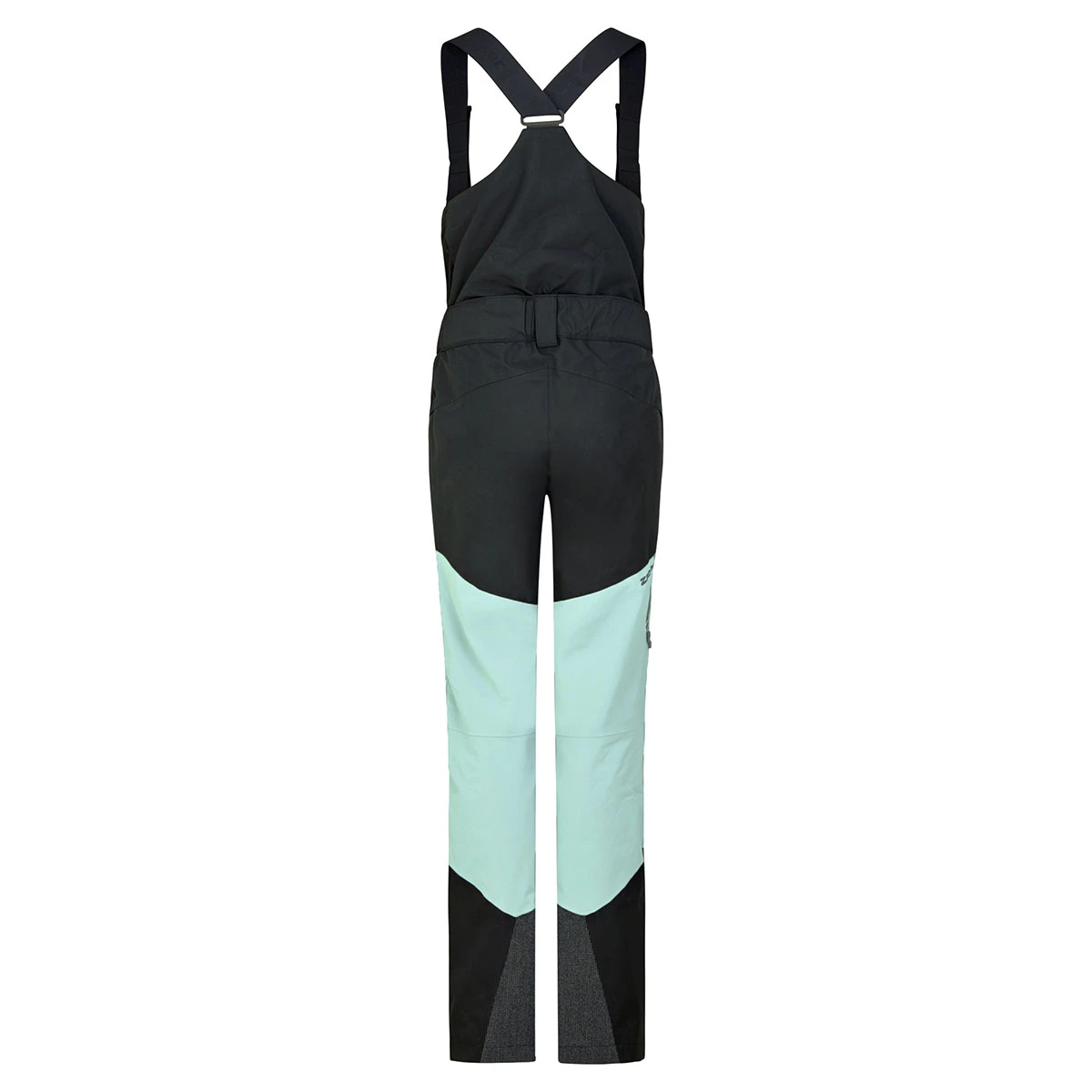 Die hochfunktionelle, unwattierte ZIENER Damen Skihose TRESA BIB LADY mit abnehmbarem, elastischem Latz und weitenregulierbarem Bund punktet mit recycelten Materialien. Die atmungsaktive, wasser- und winddichte sowie nachhaltige SYMPATEX® Membran (Wassersäule 20.000mm/Atmungsaktivität 15.000g/m²/24h) und das PONTETORTO Futter mit natürlicher Wolle sorgen für ein angenehmes, trockenes Klima und ein perfektes Wärmegleichgewicht. Dank der umweltfreundlichen Imprägnierung ist die Hose PFC frei. Das Besondere: die Jacke und die Skihose der Freeride Kollektion können mit Hilfe eines Reißverschlusses zu einem Einteiler verbunden werden. Dies verhindert das Verrutschen der Jacke und das Eindringen von Schnee und Kälte. In den beiden Eingrifftaschen und in der Seitentasche am Bein lassen sich die wichtigsten Dinge dank Reißverschluss sicher verstauen. Die ergonomisch angepasste Schnittführung am Knie sorgt für maximale Bewegungsfreiheit. Die Hose wird ergänzt durch einen verstärkten Kantenschutz sowie einem Schneefang. Belüftungsmöglichkeiten beugen Überhitzung vor und wasserdichte Reißverschlüsse verhindern das Eindringen von Nässe. Die wichtigsten Nähte sind verschweißt. Das Produkt enthält recyceltes Material – für einen ressourcenschonenden Umgang mit der Umwelt.