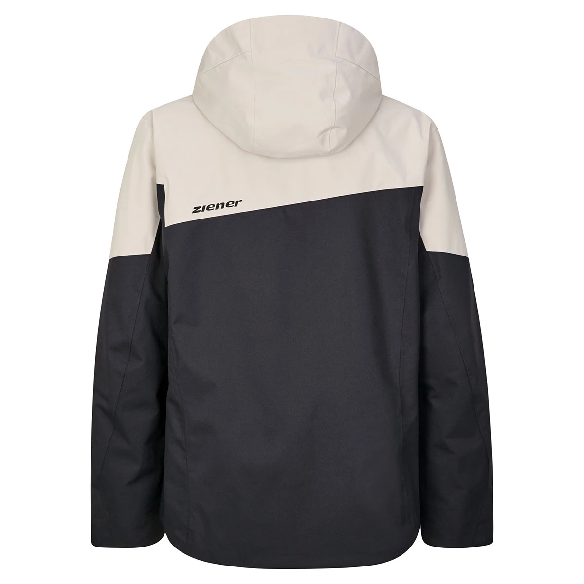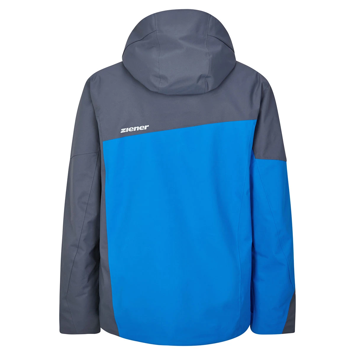 Die hochfunktionelle, unwattierte ZIENER Herren Skijacke TUNGUA MAN besticht durch ihre hochwertige Ausstattung. Die atmungsaktive, wind- und wasserdichte Dermizax® Membran (Wassersäule 20.000mm/Atmungsaktivität 10.000g/m²/24h) ist äußerst strapazierfähig und leistungsstark! Maximale Bewegungsfreiheit wird zudem durch das elastische Obermaterial sowie das elastische Futter geschaffen. Das leichte und atmungsaktive PRIMALOFT® ACTIVE Fleece aus recyceltem Material garantiert durch seine fellähnlichen Eigenschaften die perfekte Thermoregulierung und wirkt bei geringer Aktivität wärmeisolierend. Spezielle Wärmezonen und seitliche Belüftungskanäle sorgen für ein optimales Körperklima. Dank der umweltfreundlichen Imprägnierung ist die Jacke PFC frei. Eine feste Funktionskapuze mit extrahohem Kragen, elastische Ärmelinnenbündchen, wasserdichte Front- und Taschenreißverschlüsse sowie der Schneefang zählen zur Basisausstattung. Die zwei Brusttaschen sind ebenfalls mit einem Reißverschluss ausgestattet – für das sichere Verstauen von kleinen Gegenständen. Zahlreiche Features wie Taschen für Ski- und Sonnenbrillen sowie für Smartphones und eine Skipasstasche am linken Arm machen diese Jacke zum perfekten Begleiter auf der Skipiste.