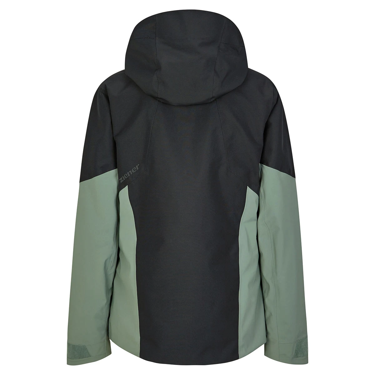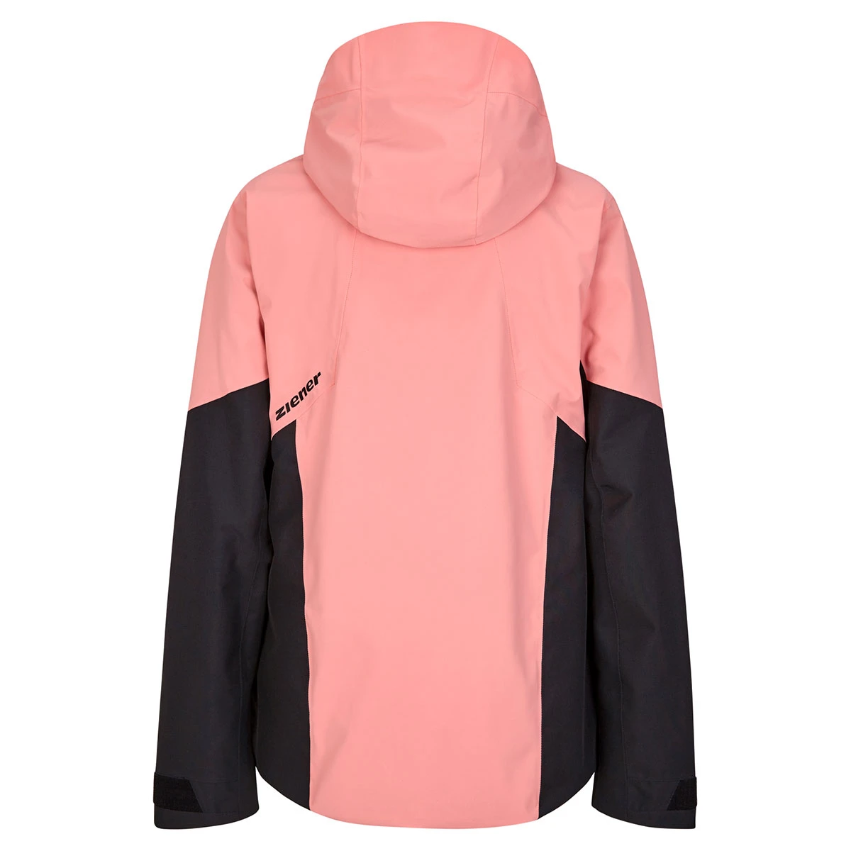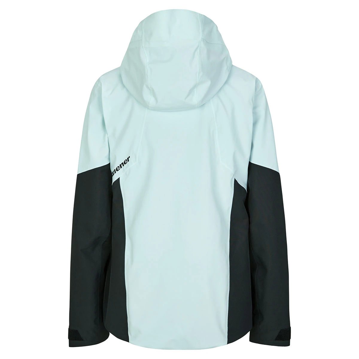 Die hochfunktionelle, unwattierte ZIENER Damen Skijacke TURIS LADY punktet mit recycelten Materialien. Die atmungsaktive, wasser- und winddichte sowie nachhaltige SYMPATEX® Membran (Wassersäule 20.000mm/Atmungsaktivität 15.000g/m²/24h) und das PONTETORTO Futter mit natürlicher Wolle sorgen für ein angenehmes, trockenes Klima und ein perfektes Wärmegleichgewicht. Dank der umweltfreundlichen Imprägnierung ist die Jacke PFC frei. Das Besondere: die Jacke und die Skihose der Freeride Kollektion können mit Hilfe eines Reißverschlusses zu einem Einteiler verbunden werden. Dies verhindert das Verrutschen der Jacke und das Eindringen von Schnee und Kälte. Technische Details wie die verstellbare Funktionskapuze, elastische Ärmelinnenbündchen und ein weitenregulierbarer Saum sorgen für einen perfekten Funktionskomfort. Ein extra hoher Kragen hält den Hals an kalten Tagen schön warm. Wasserdichte Reißverschlüsse und ein abnehmbarer Schneefang gehören zur Basisausstattung. In den beiden Eingrifftaschen und der Brusttasche lassen sich die wichtigsten Dinge dank Reißverschluss sicher verstauen. Die seitliche Skipasstasche, Taschen für Ski- und Sonnenbrillen sowie eine Smartphone Tasche machen die Jacke zu einem unverzichtbaren Begleiter auf der Piste. Und sollte es doch mal zu warm werden, sorgen die Belüftungsmöglichkeiten unter den Armen für die nötige Ventilation. Die wichtigsten Nähte sind verschweißt. Das Produkt enthält recyceltes Material – für einen ressourcenschonenden Umgang mit der Umwelt.