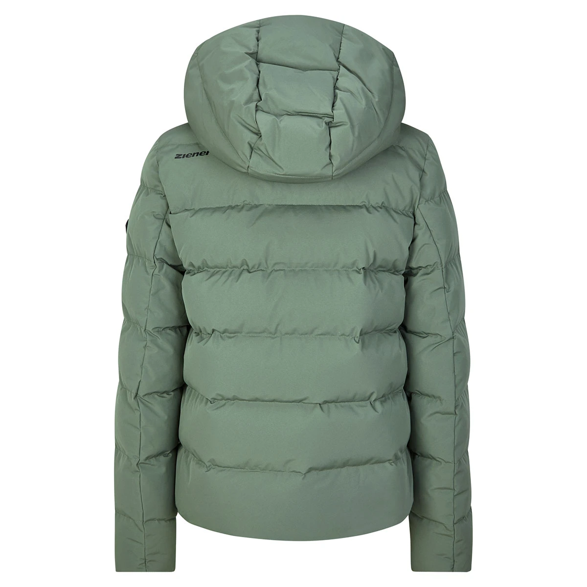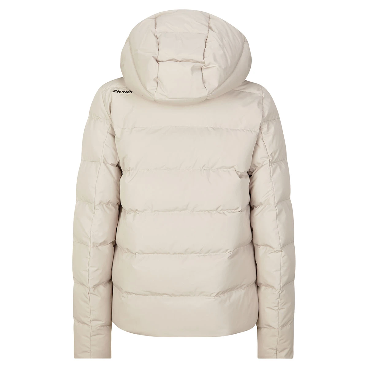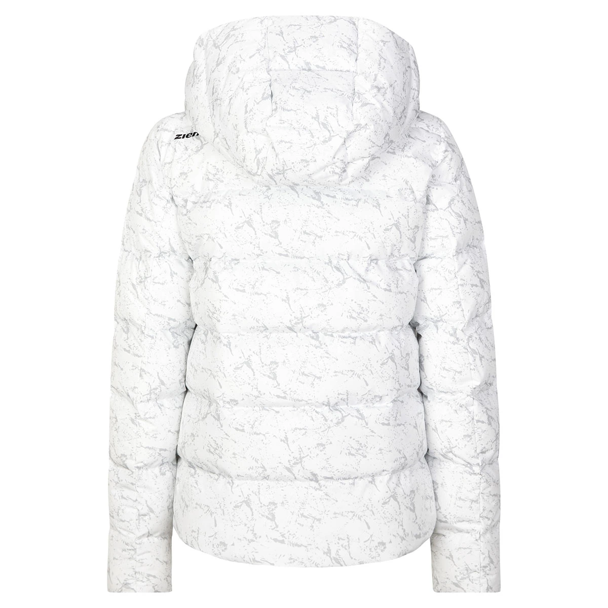 Die wärmende, modische ZIENER Damen Skijacke TUSJA LADY mit leichter A-Form zeichnet sich durch die waschbare, umweltfreundliche CLOMAX® HALO MicroDown aus. Diese sorgt für eine überragende Wärmeleistung, ist dabei klein komprimierbar und sehr formbeständig. Die atmungsaktive, wasser- und winddichte ZIENER AQUASHIELD® Membran (Wassersäule 10.000mm/Atmungsaktivität 10.000g/m²/24h) bietet ein warmes und trockenes Klima. Dank der umweltfreundlichen Imprägnierung ist die Jacke PFC frei. Den extra hohen, kuscheligen Kragen kann man zuknöpfen – er trägt zum hohen Funktionskomfort und modernen Look dieser Skijacke bei. Bequeme Ärmelinnenbündchen und ein elastisches Futter bieten optimale Bewegungsfreiheit. Eine seitliche Skipasstasche sowie ein herausnehmbarer Schneefang machen diese Jacke zum optimalen Begleiter für einen Tag auf der Piste. Eine Innentasche für Ski- und Sonnenbrille sowie die Tasche für Smartphones bieten Platz für die wichtigsten Dinge.